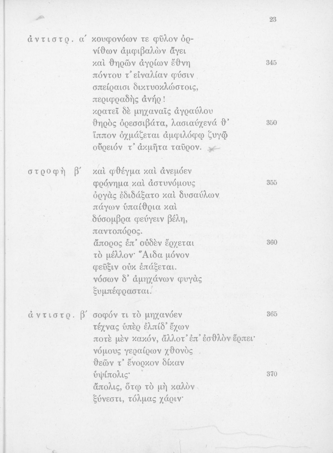 Σχολικό εγχειρίδιο Αρχαίων Ελληνικών της ΣΤ΄ Γυμνασίου. Το βιβλίο παρουσιάζει το έργο του Σοφοκλή, Αντιγόνη. Στο δεύτερο μέρος περιλαμβάνει λεξιλογικά και ερμηνευτικά σχόλια.