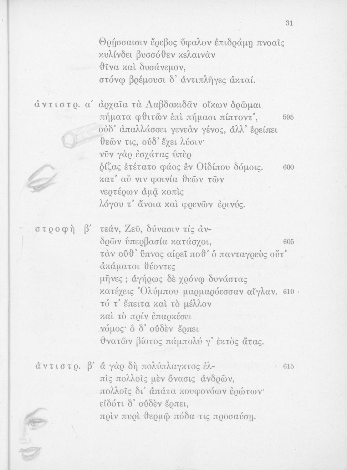 Σχολικό εγχειρίδιο της ΣΤ΄ Γυμνασίου για το μάθημα των Αρχαίων Ελληνικών. Περιλαμβάνει αποσπάσματα του αρχαίου κειμένου της τραγωδίας. Επίσης, περιέχει μετάφραση, ερμηνευτικά, πραγματολογικά σχόλια και λεξιλογικές παρατηρήσεις του συγγραφέα. Στο βιβλίο η μαθήτρια έχει ζωγραφίσει σκίτσα.