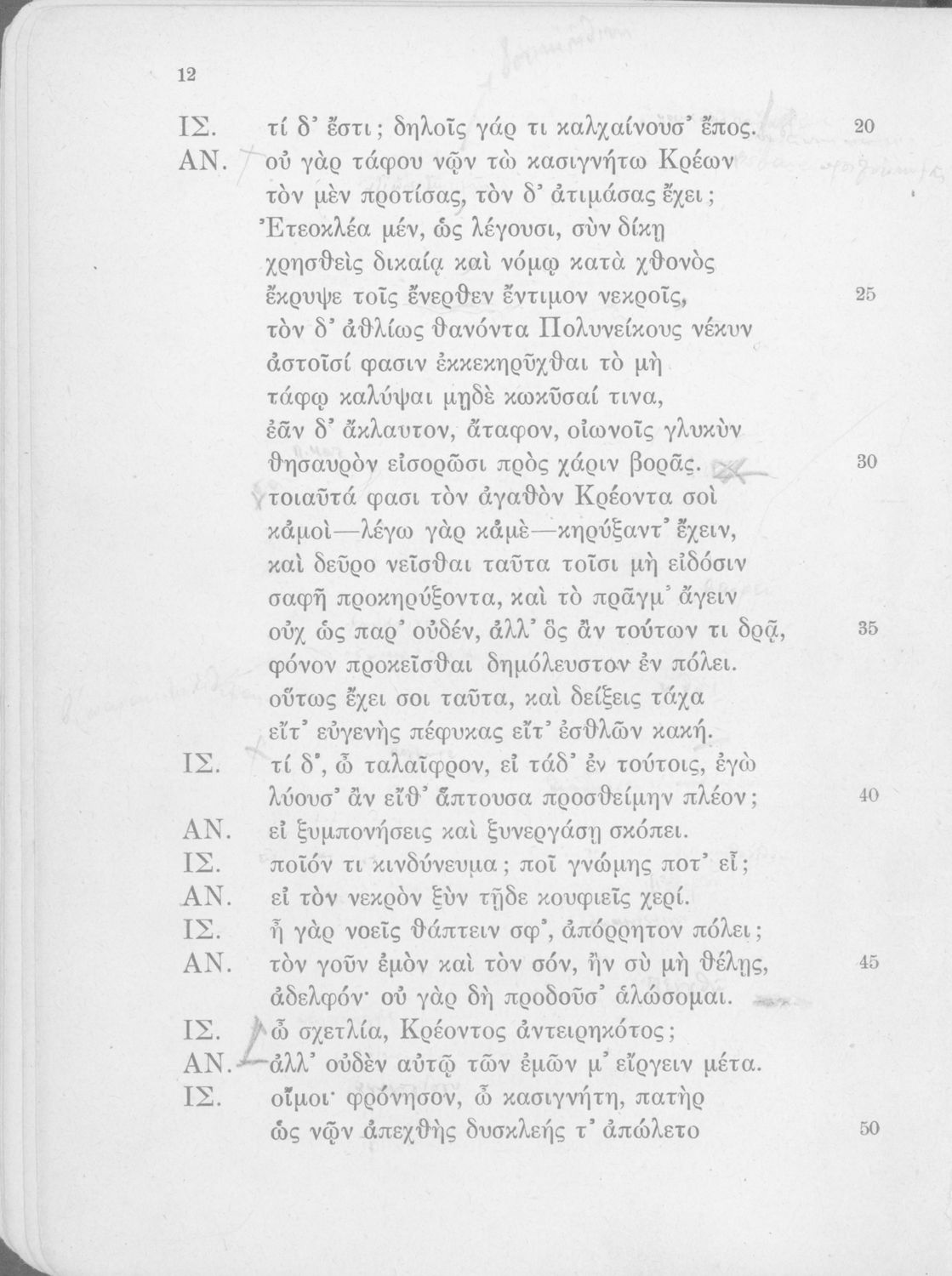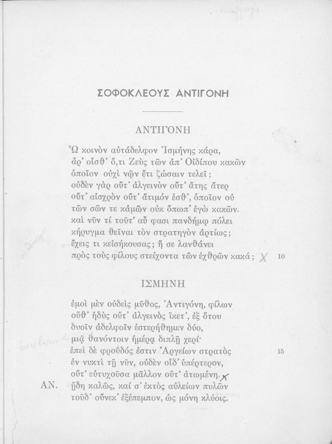 Τίτλος: Σοφοκλέους Αντιγόνη δια την ΣΤ΄ Τάξιν των Γυμνασίων
