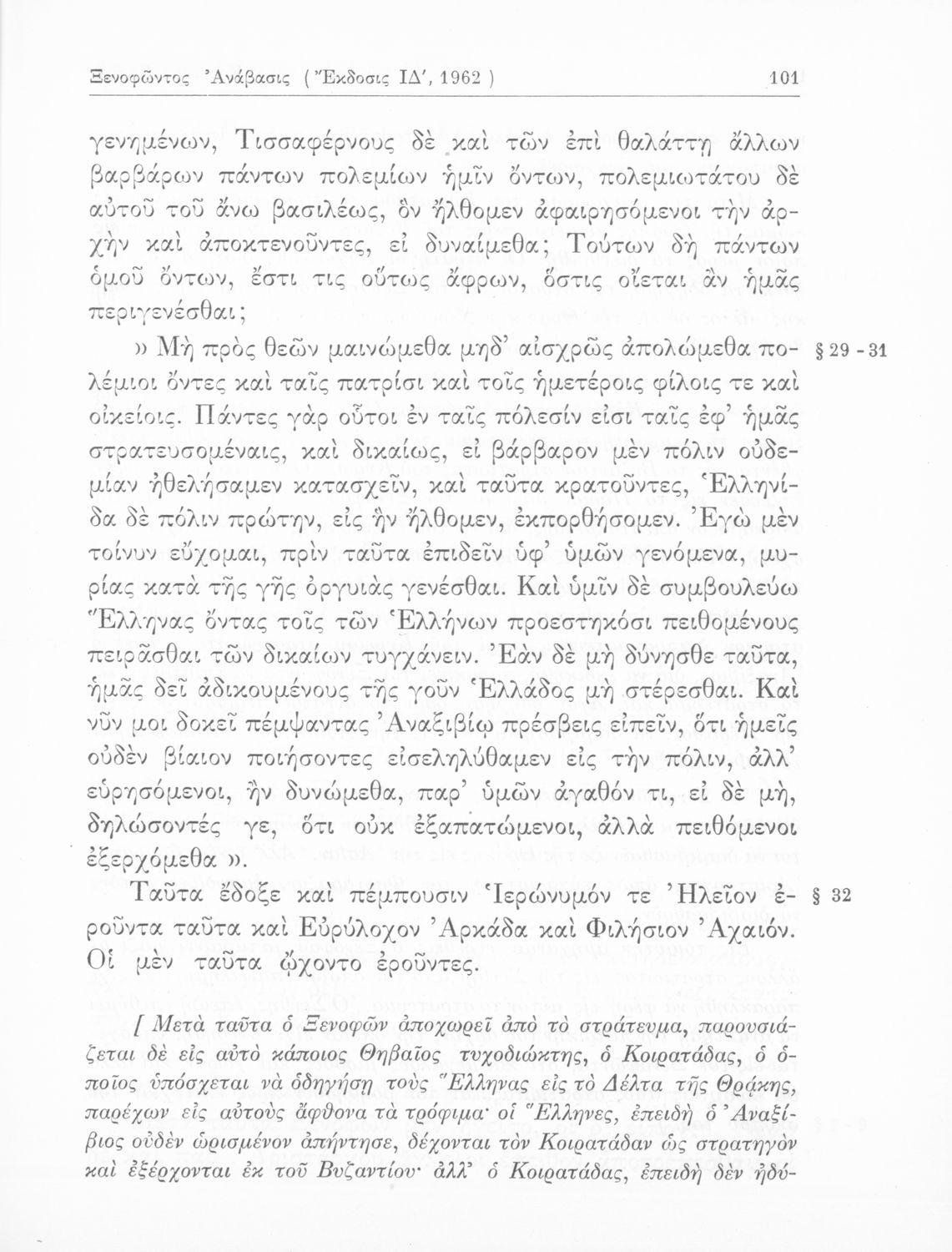 Ξενοφών, Νικόλαος Ι. Ζαφειρίου (σχόλια)