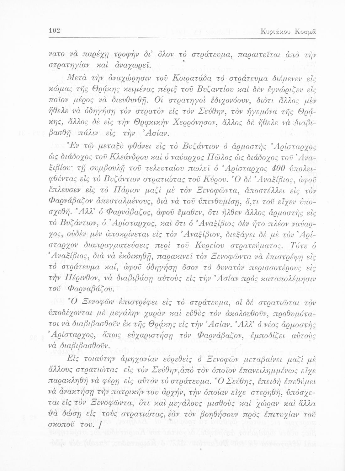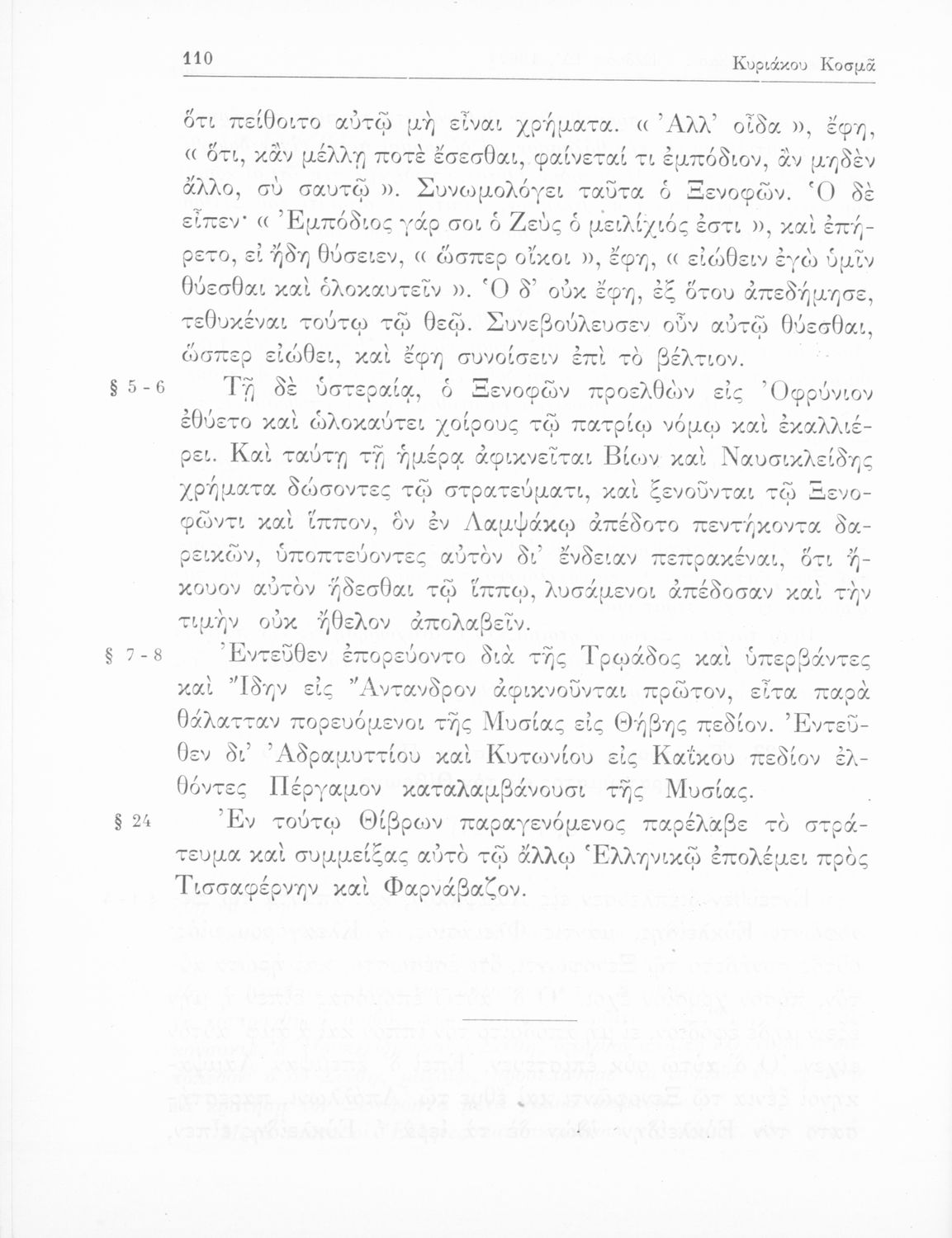 Ξενοφών, Κυριάκος Κοσμάς (σχόλια)