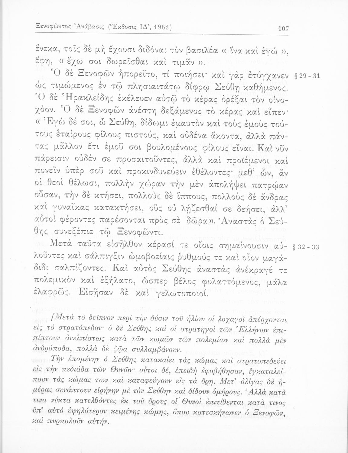 Σχολικό εγχειρίδιο Αρχαίων Ελληνικών για τη Β΄ Γυμνασίου με αποσπάσματα από το έργο του Ξενοφώντα. Το βιβλίο περιέχει ερμηνευτικές σημειώσεις και σχόλια.