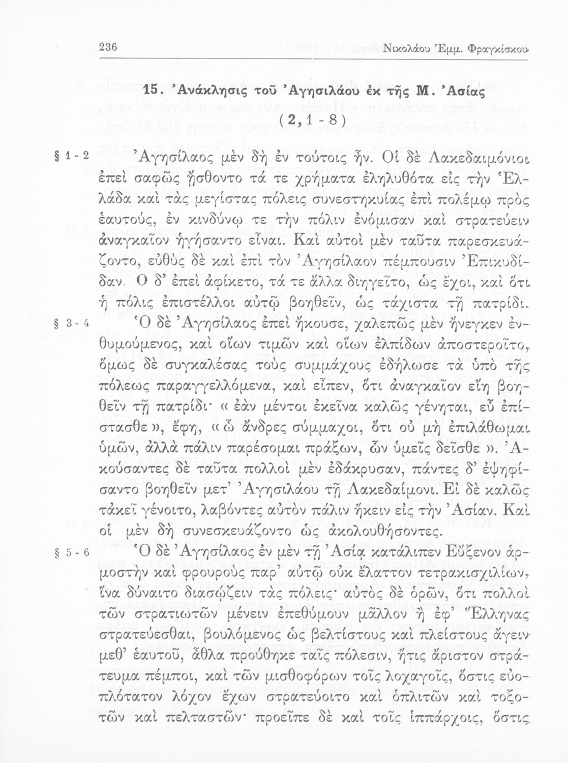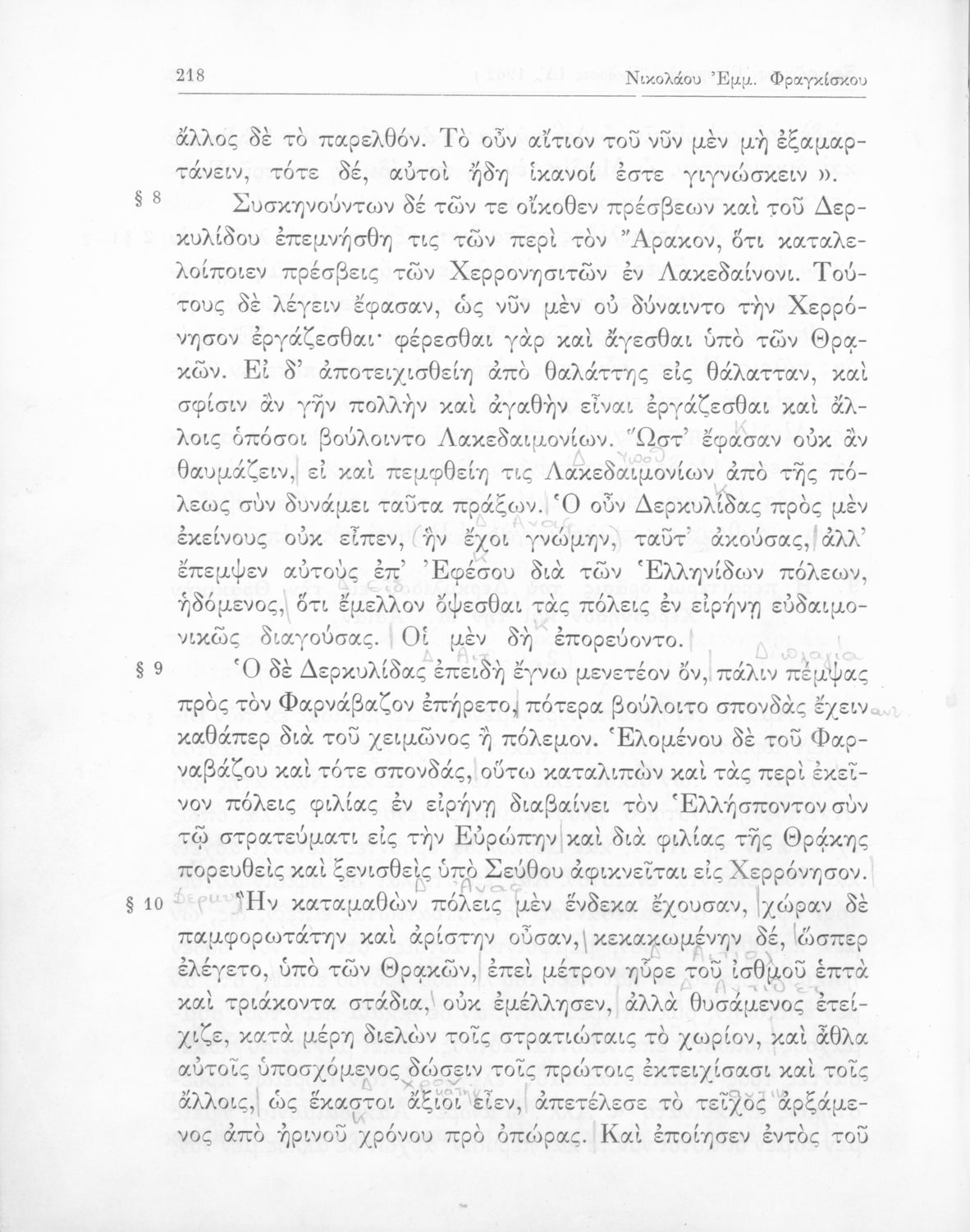 Ξενοφών, Κυριάκος Κοσμάς, Νικόλαος Φραγκίσκος (σχόλια)