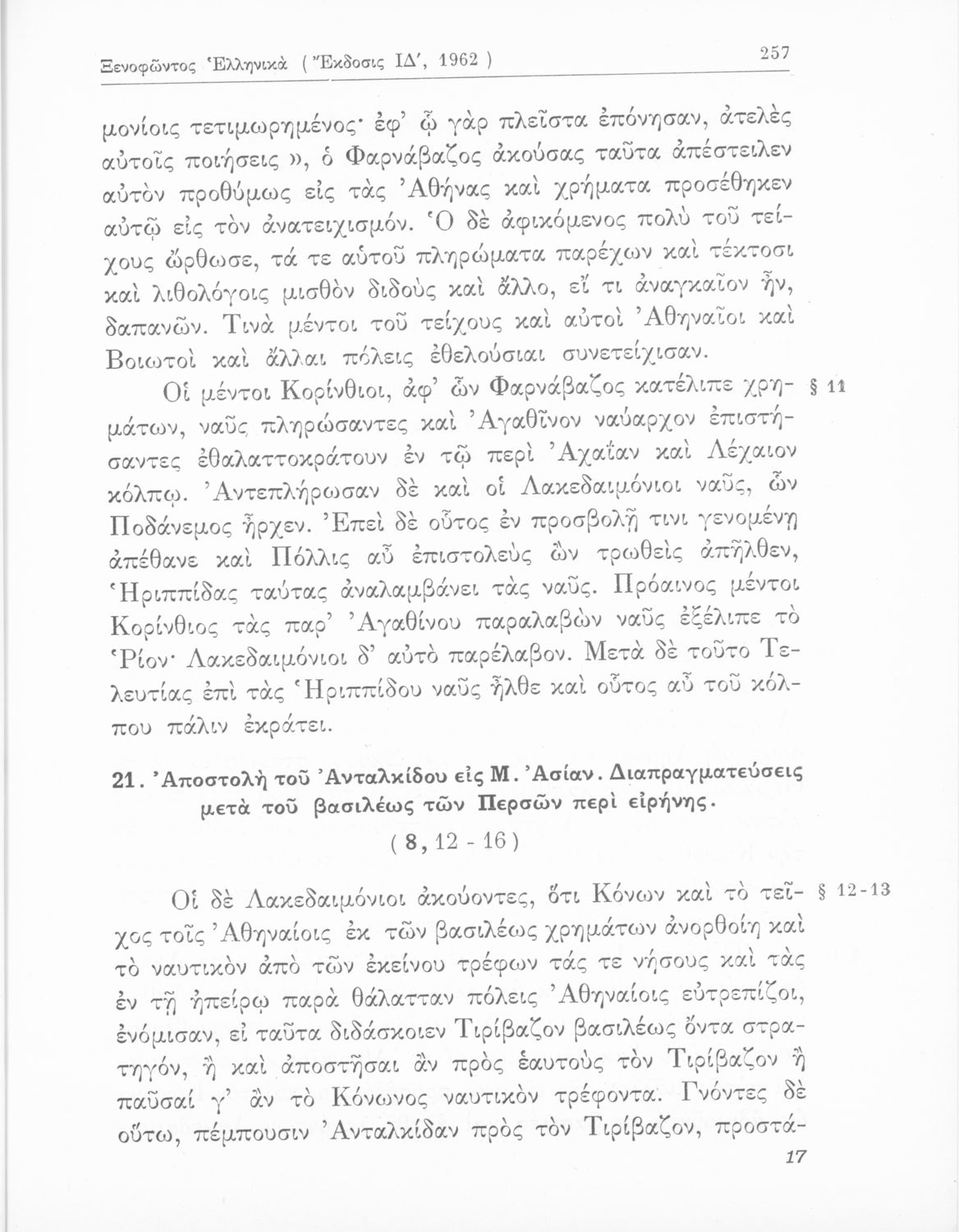 Ξενοφών, Νικόλαος Ι. Ζαφειρίου (σχόλια)