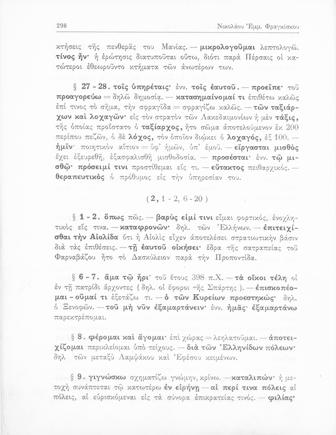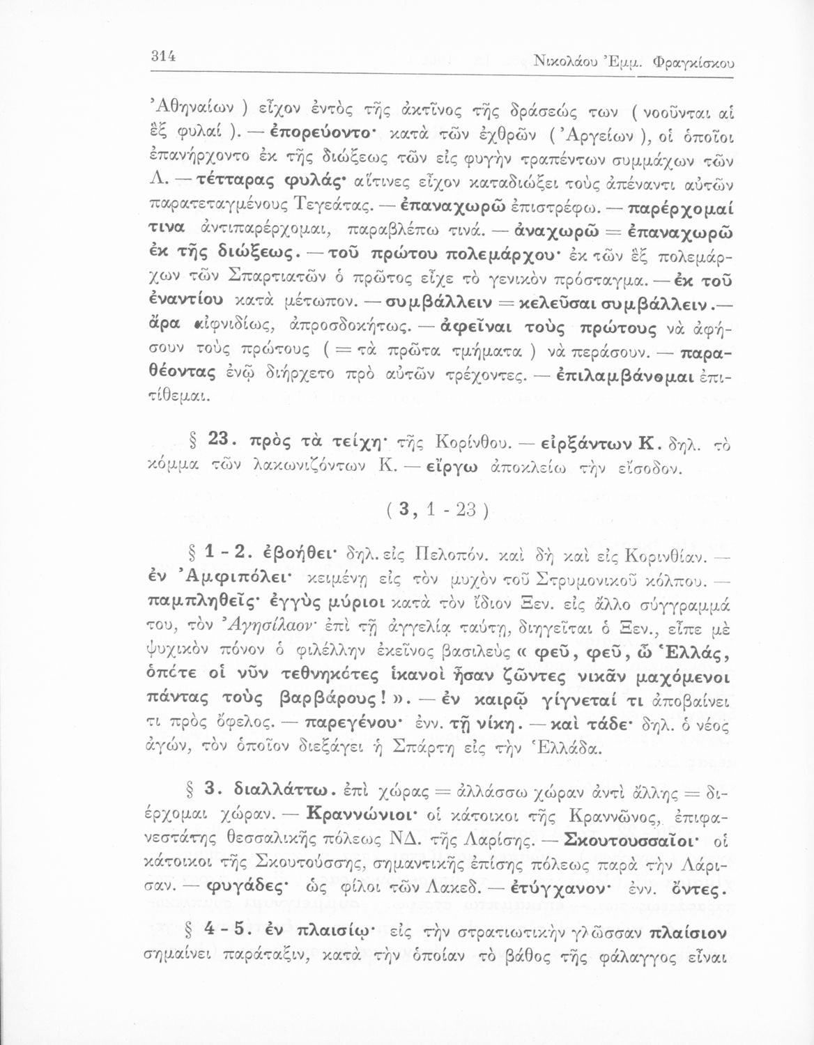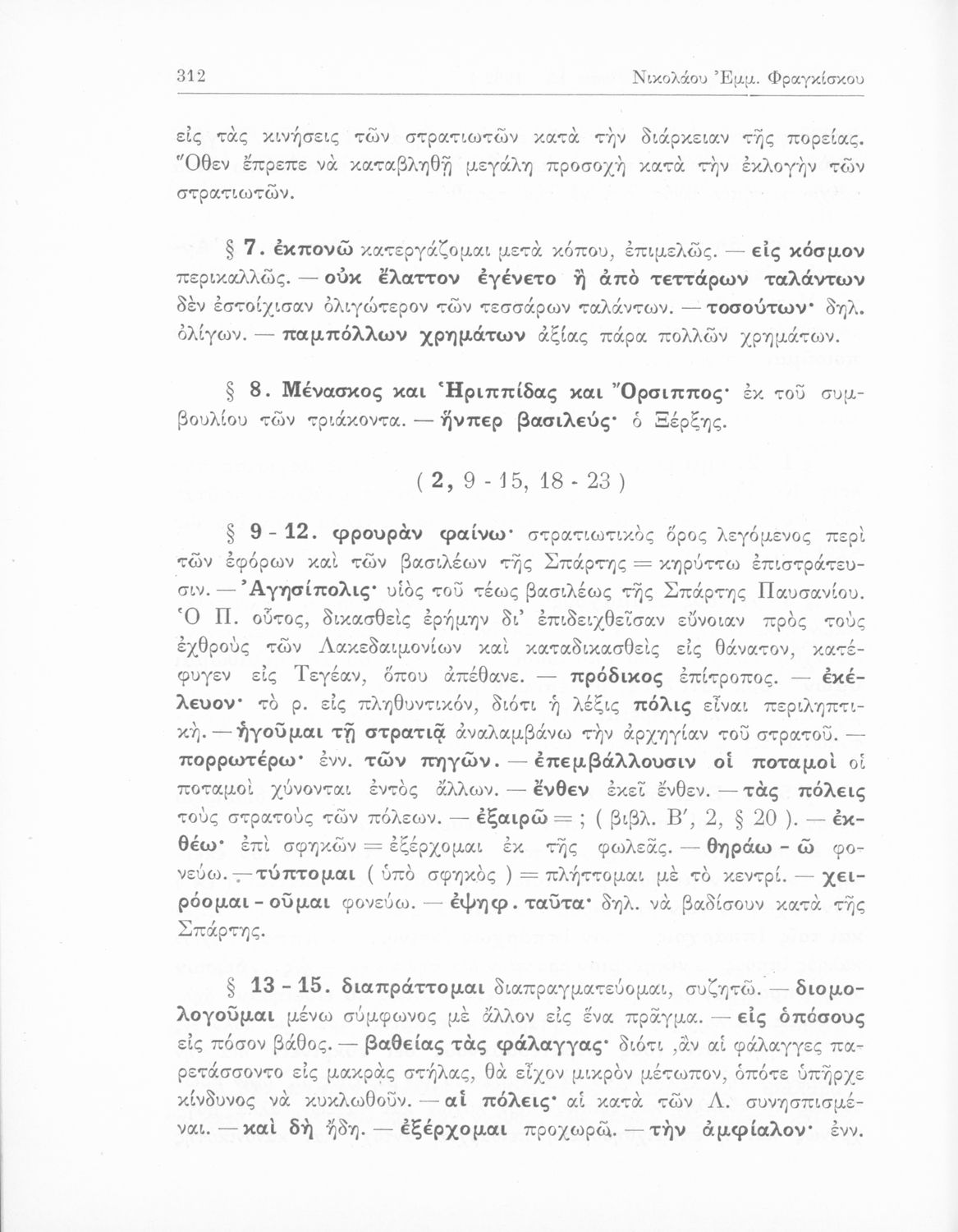 Ξενοφών, Κυριάκος Κοσμάς, Νικόλαος Φραγκίσκος (σχόλια)