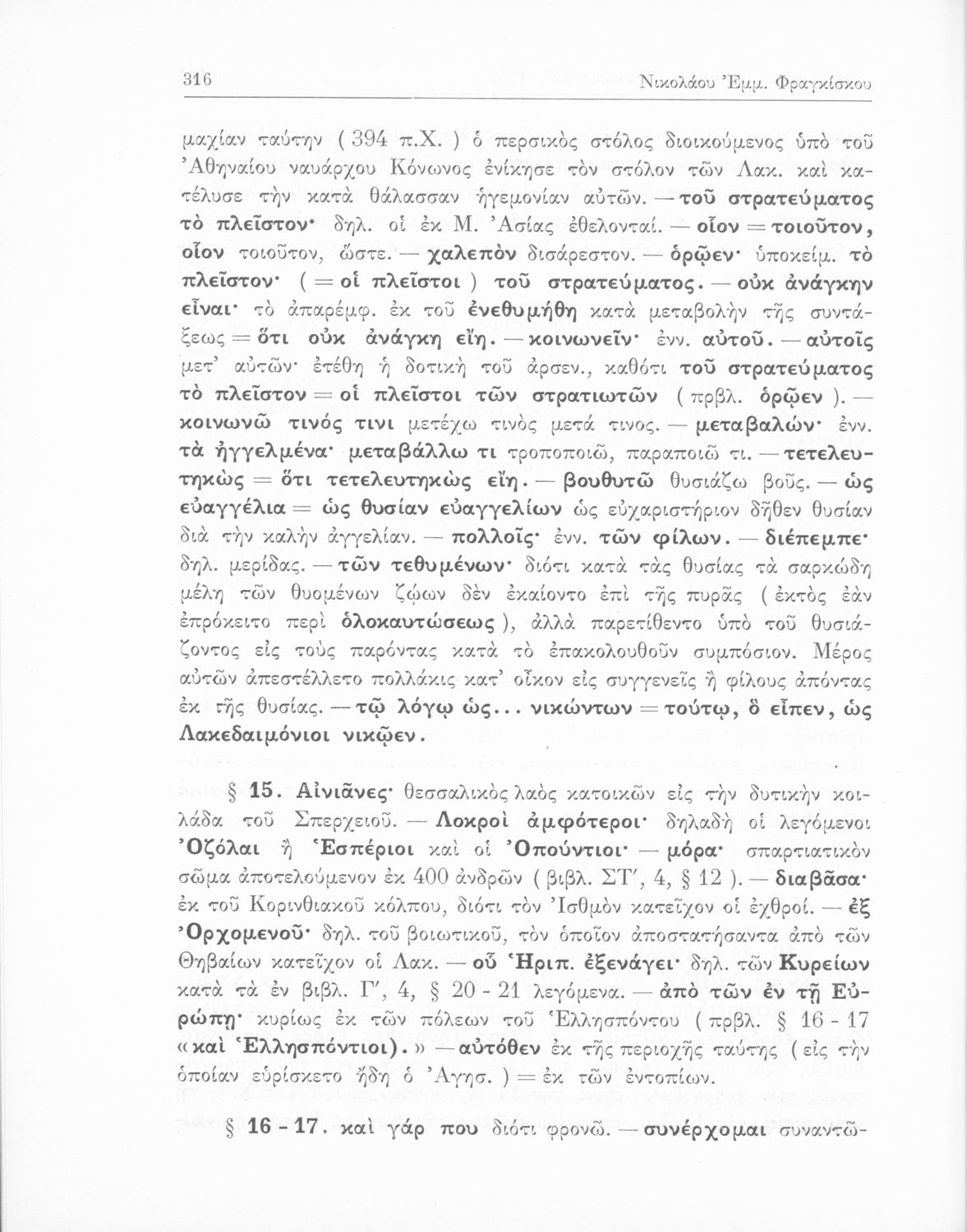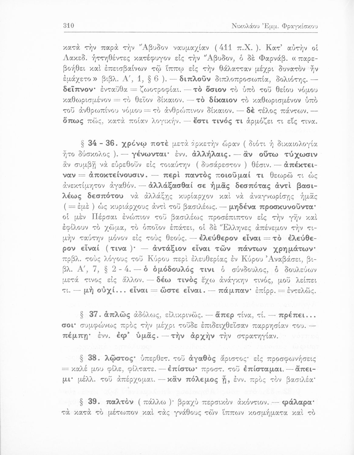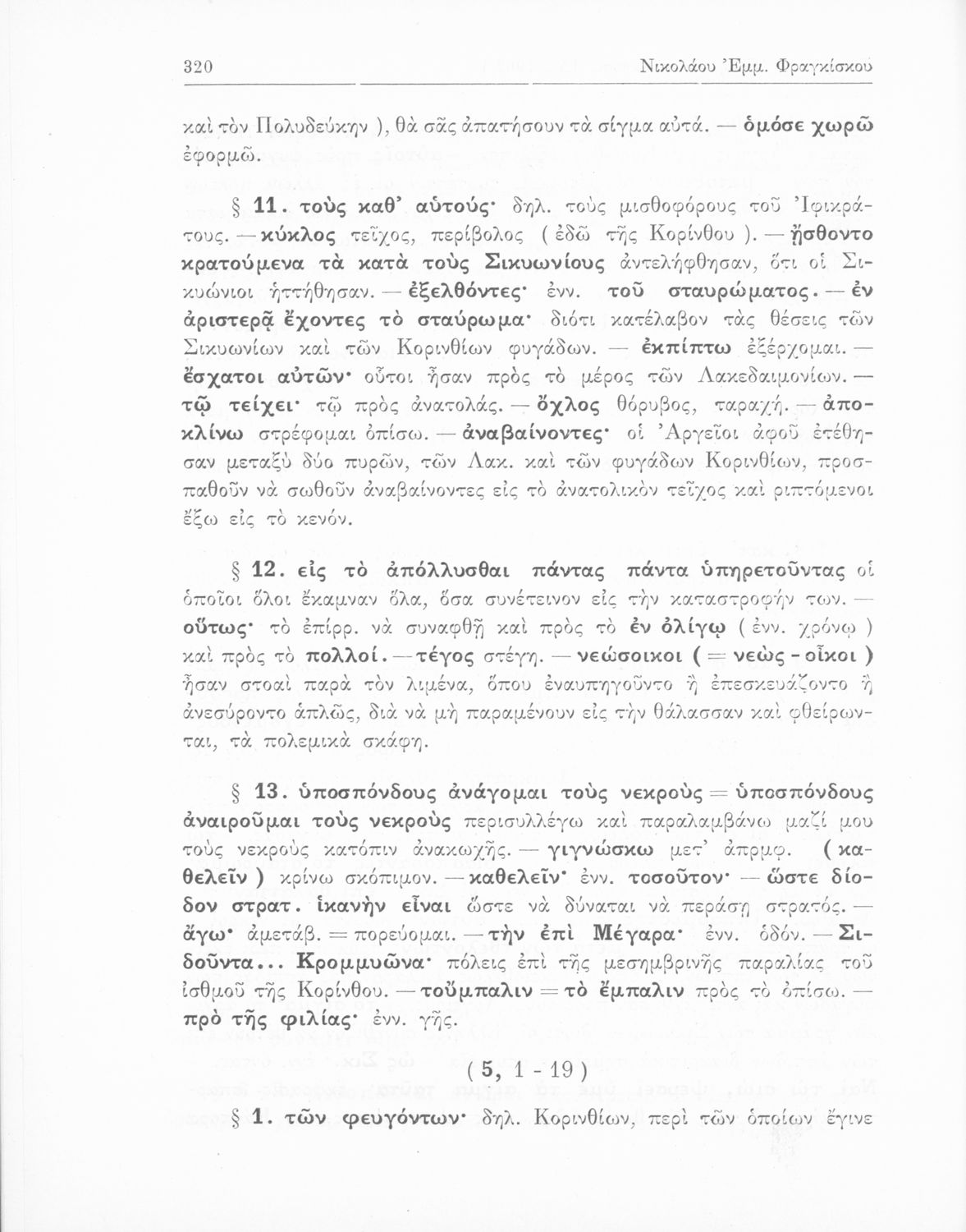 Ξενοφών, Κυριάκος Κοσμάς, Νικόλαος Φραγκίσκος (σχόλια)
