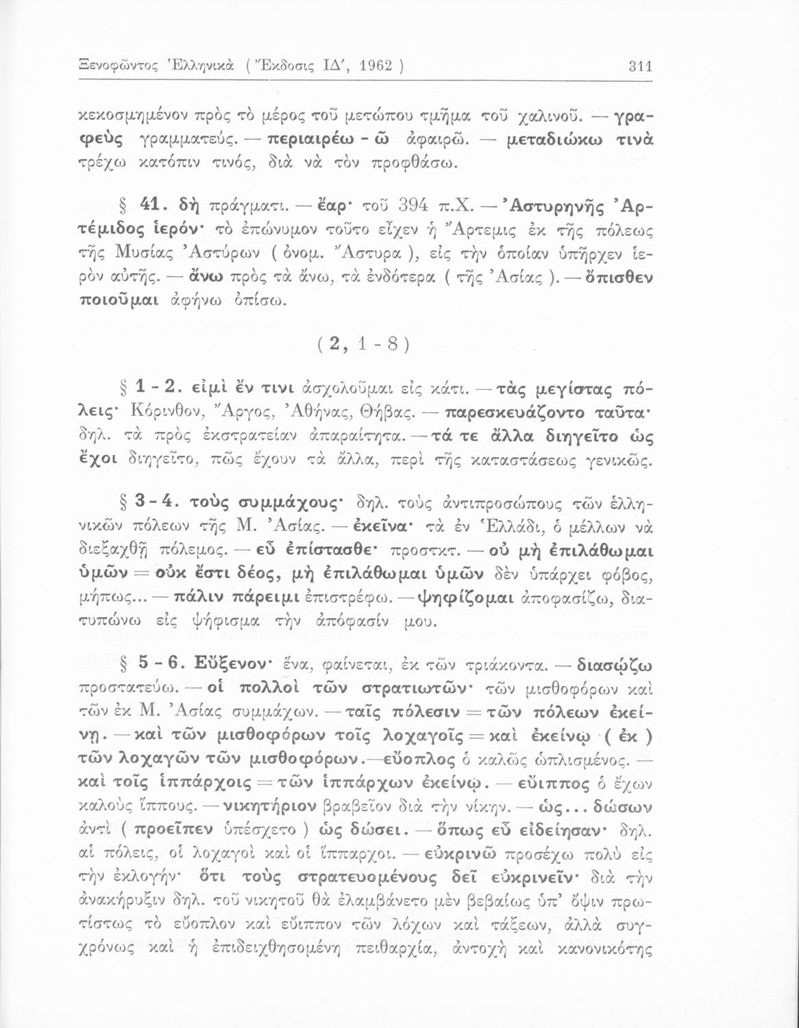 Σχολικό εγχειρίδιο Β΄ Γυμνασίου για το μάθημα των Αρχαίων Ελληνικών. Περιλαμβάνει αποσπάσματα του αρχαίου κειμένου από τα έργα του Ξενοφώντα. Περιέχει μετάφραση ερμηνευτικά, πραγματολογικά σχόλια και λεξιλογικές παρατηρήσεις του συγγραφέα.