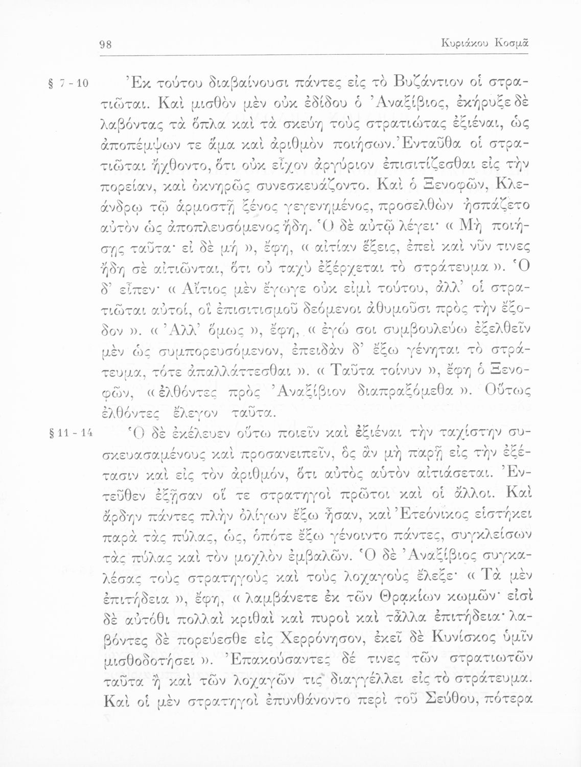 Ξενοφών, Νικόλαος Ζαφειρίου (σχόλια)