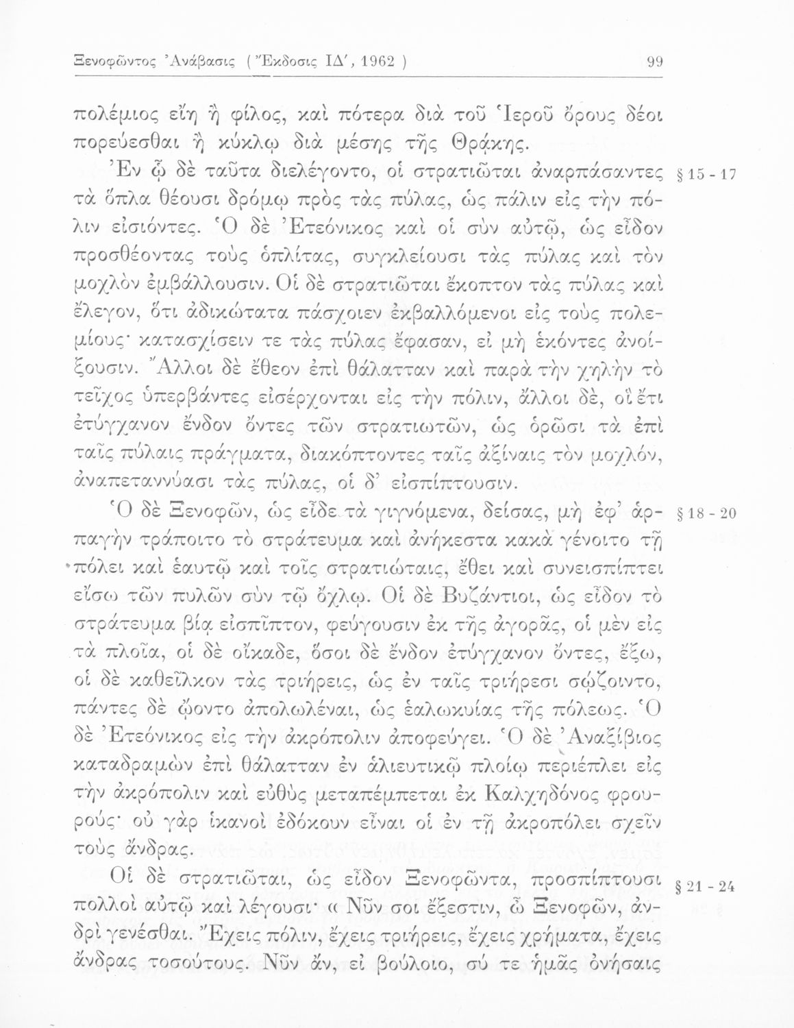 Σχολικό εγχειρίδιο Β΄ Γυμνασίου για το μάθημα των Αρχαίων Ελληνικών. Περιλαμβάνει αποσπάσματα του αρχαίου κειμένου από τα έργα του Ξενοφώντα. Περιέχει μετάφραση ερμηνευτικά, πραγματολογικά σχόλια και λεξιλογικές παρατηρήσεις του συγγραφέα.