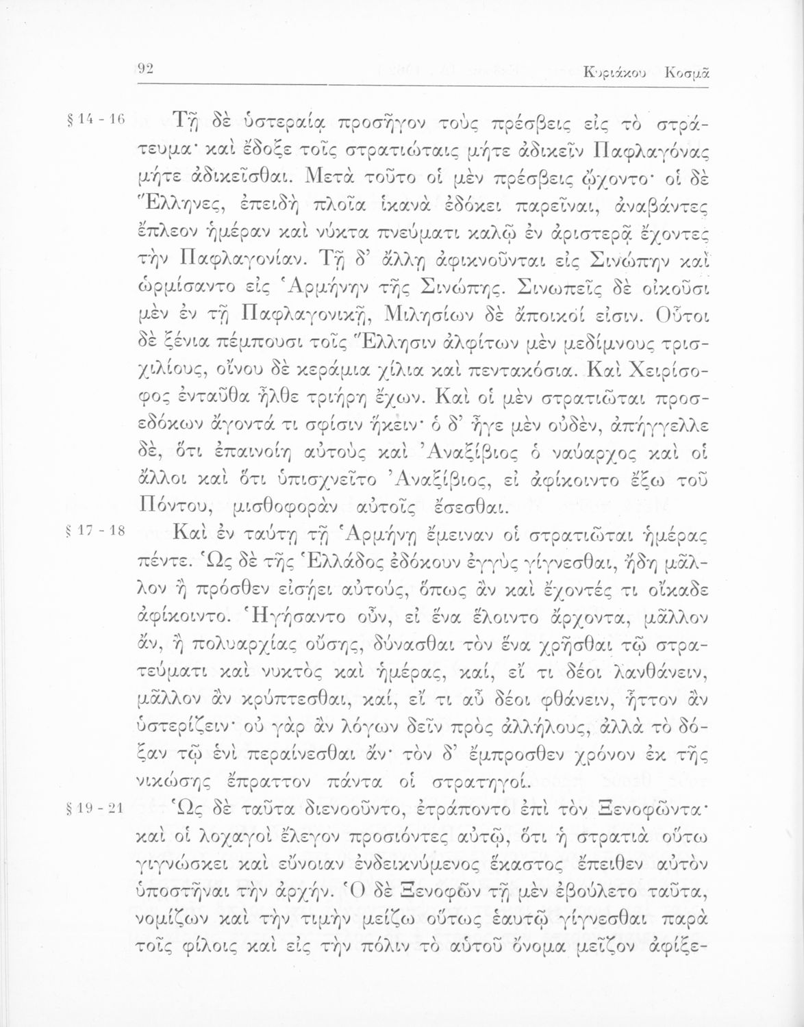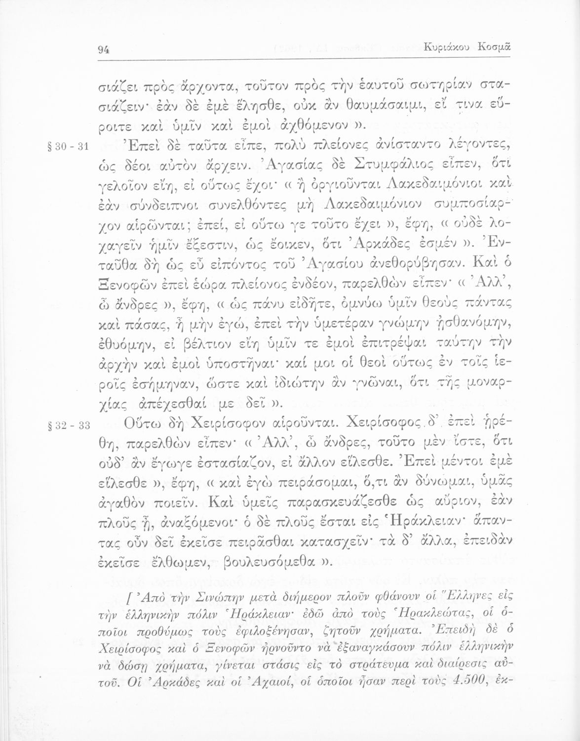 Ξενοφών, Κυριάκος Κοσμάς (σχόλια)
