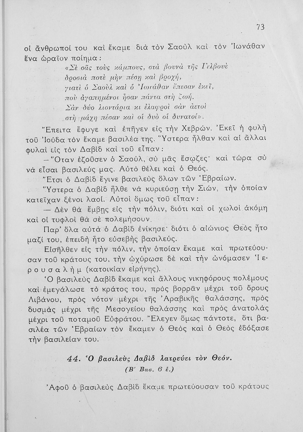 Σχολικό εγχειρίδιο Θρησκευτικών Α΄ Γυμνασίου που συνιστά μία εξιστόρηση της Παλαιάς Διαθήκης από τη δημιουργία του κόσμου ως την υποταγή των Εβραίων στους Ρωμαίους.