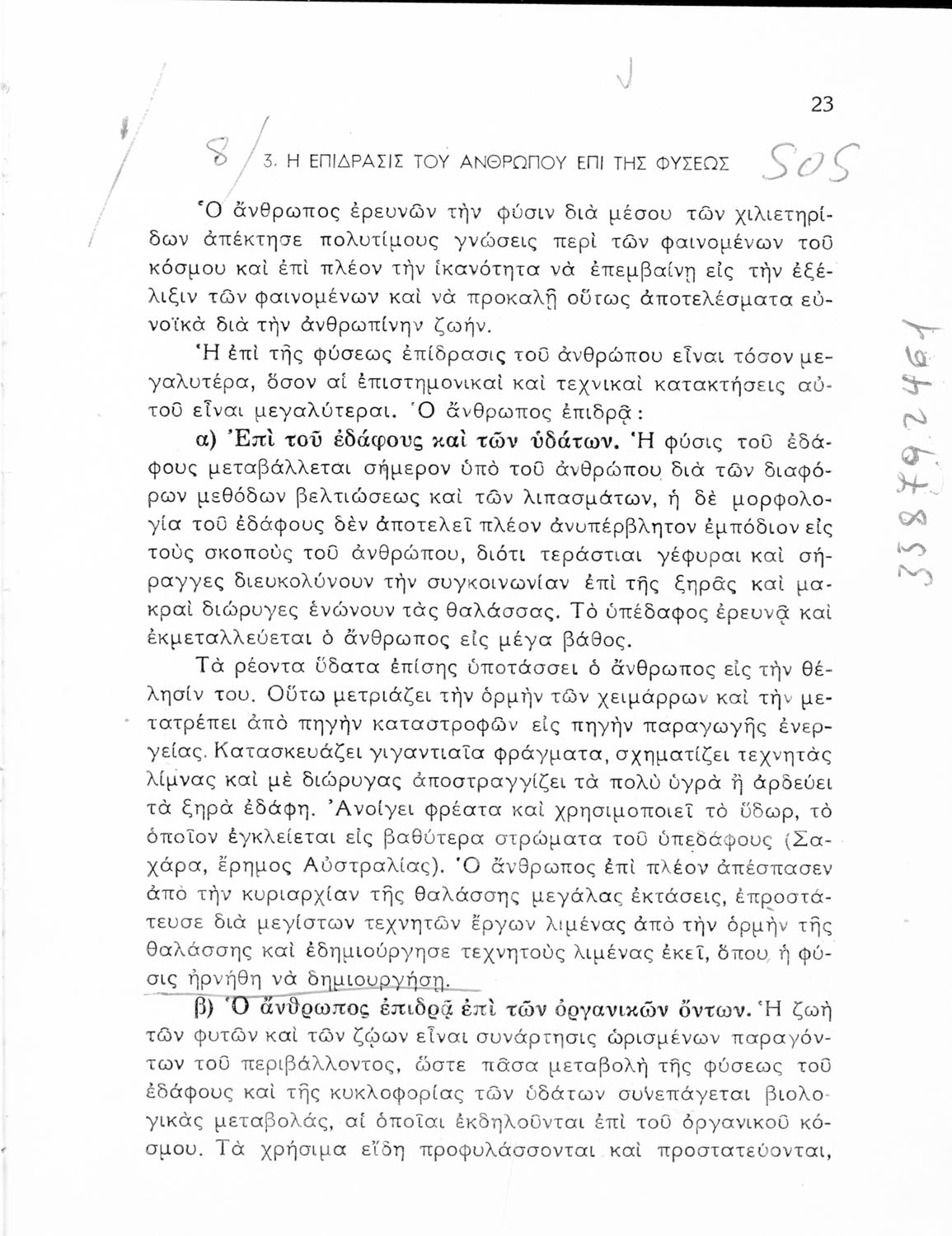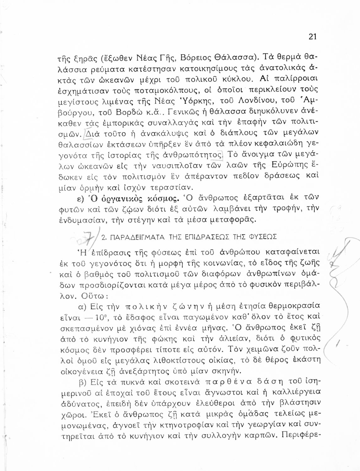 Σχολικό εγχειρίδιο Γεωγραφίας Ζ' Οκταταξίου Γυμνασίου που περιλαμβάνει εισαγωγή στην ανθρωπογεωγραφία και εστιάζει στην παγκόσμια οικονομική ζωή και τις μεγάλες οικονομικές δυνάμεις. Περιέχει και γεωγραφική και οικονομική επισκόπηση της Ελλάδας καθώς και μελέτη της πολιτικής και κοινωνικής ζωής της.