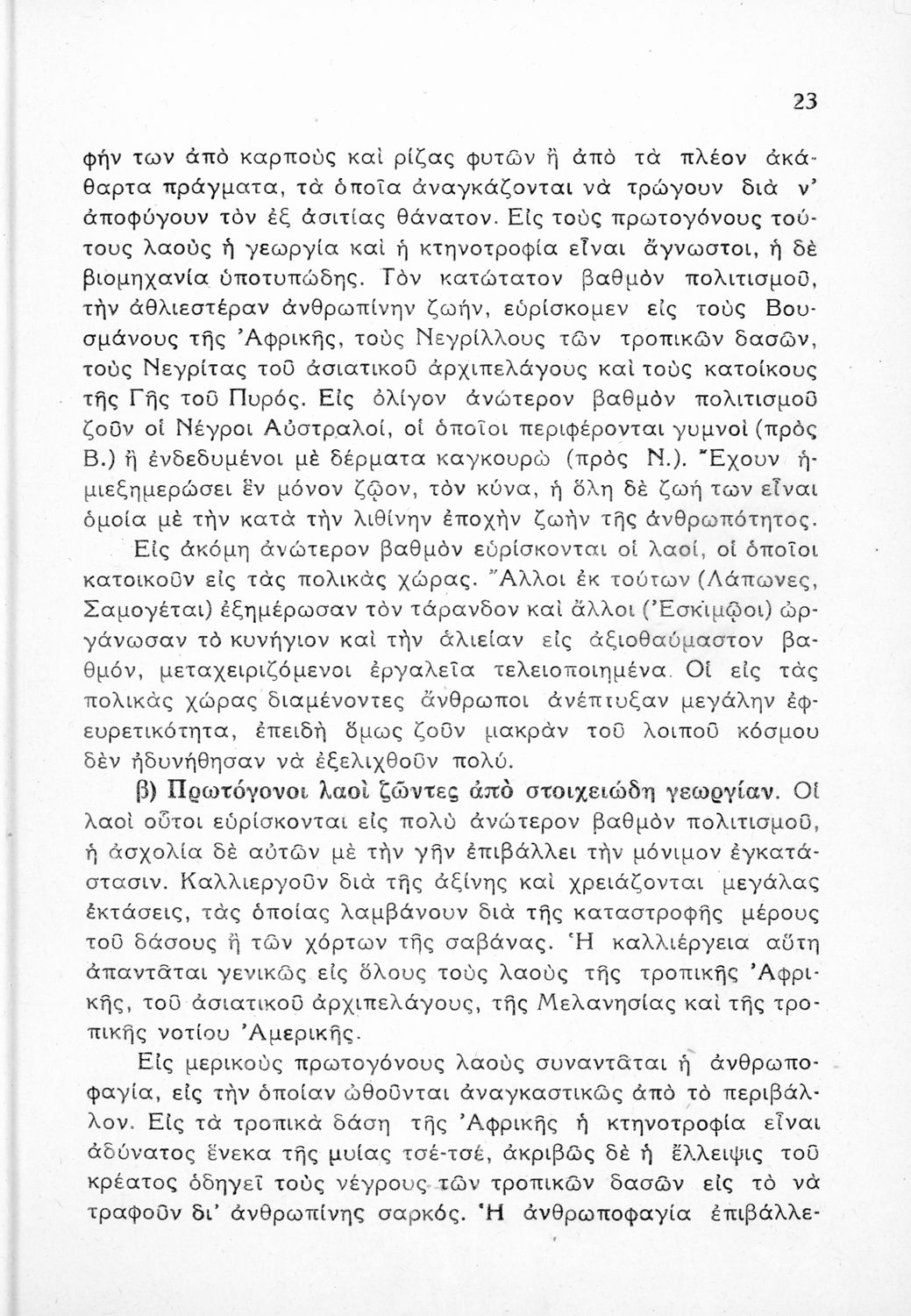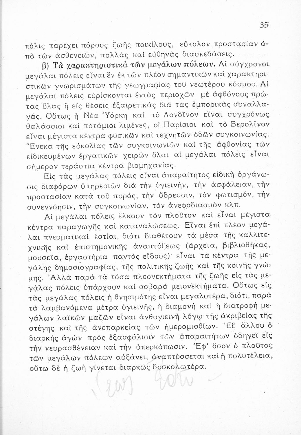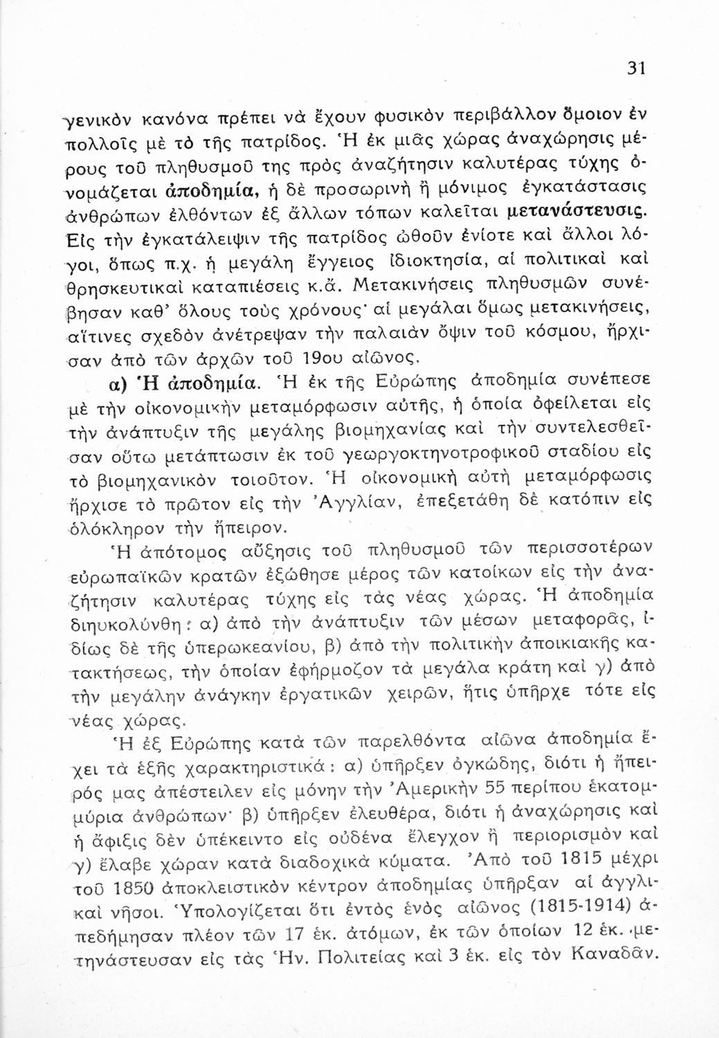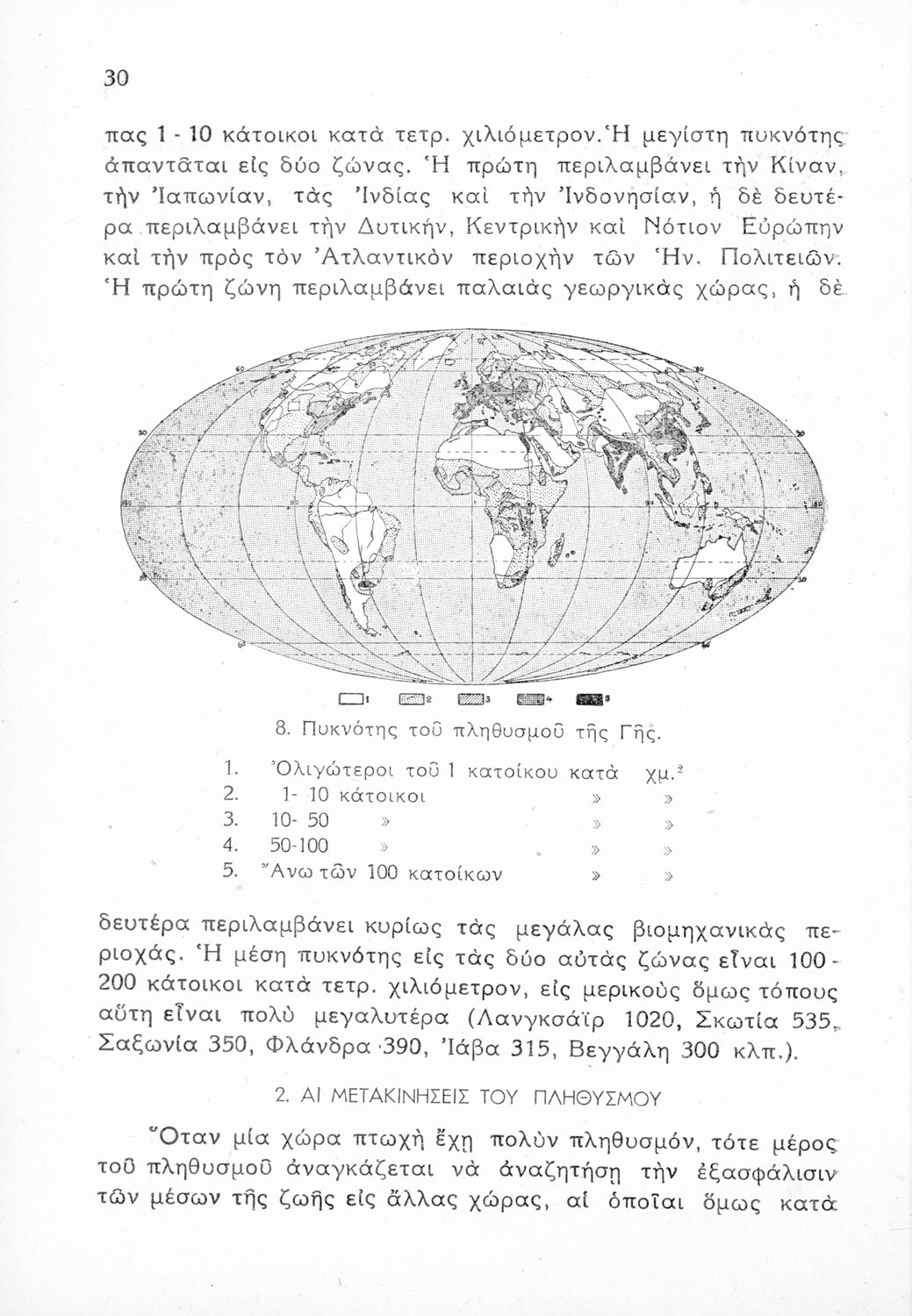Βαθμίδα εκπαίδευσης: Δευτεροβάθμια Τάξη: Ε' Γυμνασίου Μάθημα: Γεωγραφία Γλώσσα: Απλή καθαρεύουσα Παρουσίαση περιεχομένου: Σχολικό εγχειρίδιο Γεωγραφίας Ε΄ Εξαταξίου Γυμνασίου που εστιάζει την ανθρωπογεωγραφία, με έμφαση σε θέματα μετανάστευσης και πληθυσμιακής αύξησης, και την οικονομική γεωγραφία με έμφαση σε θέματα γεωργικής, κτηνοτροφικής, δασικής και βιομηχανικής παραγωγής. Περιέχει και στοιχεία για τον ελληνικό τουρισμό και εμπόριο. |