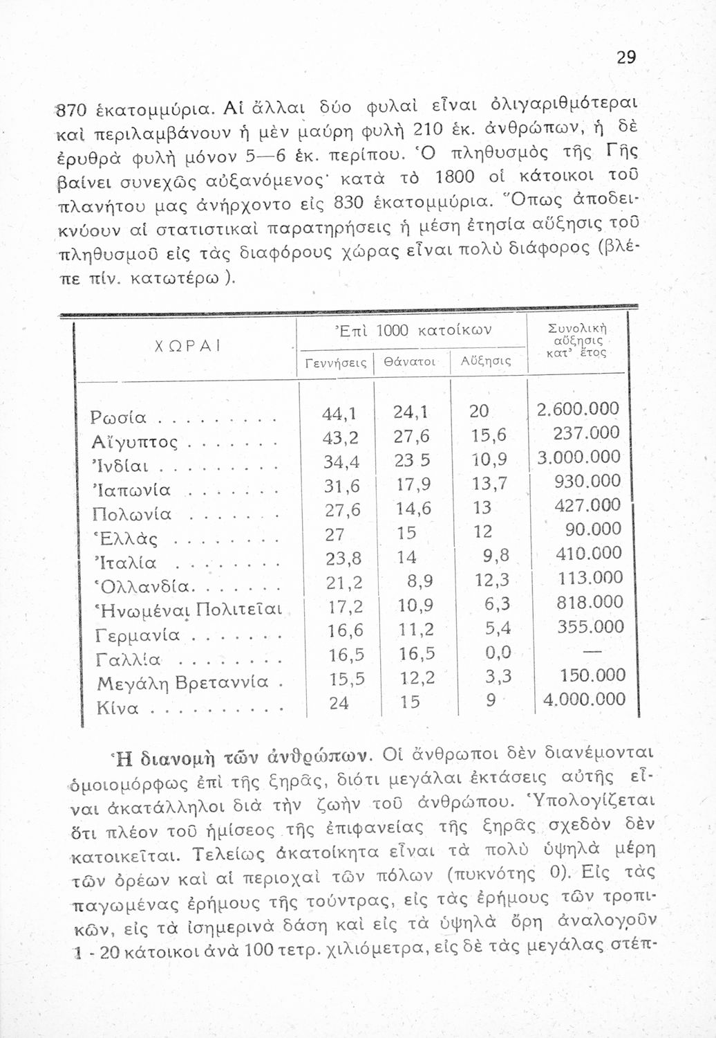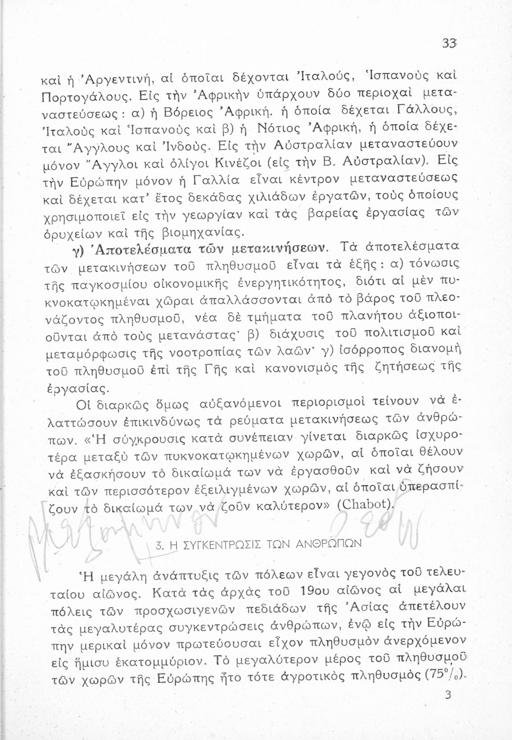 Σχολικό εγχειρίδιο Γεωγραφίας Ε΄ Εξαταξίου Γυμνασίου που εστιάζει την ανθρωπογεωγραφία, με έμφαση σε θέματα μετανάστευσης και πληθυσμιακής αύξησης, και την οικονομική γεωγραφία με έμφαση σε θέματα γεωργικής, κτηνοτροφικής, δασικής και βιομηχανικής παραγωγής. Περιέχει και στοιχεία για τον ελληνικό τουρισμό και εμπόριο.
