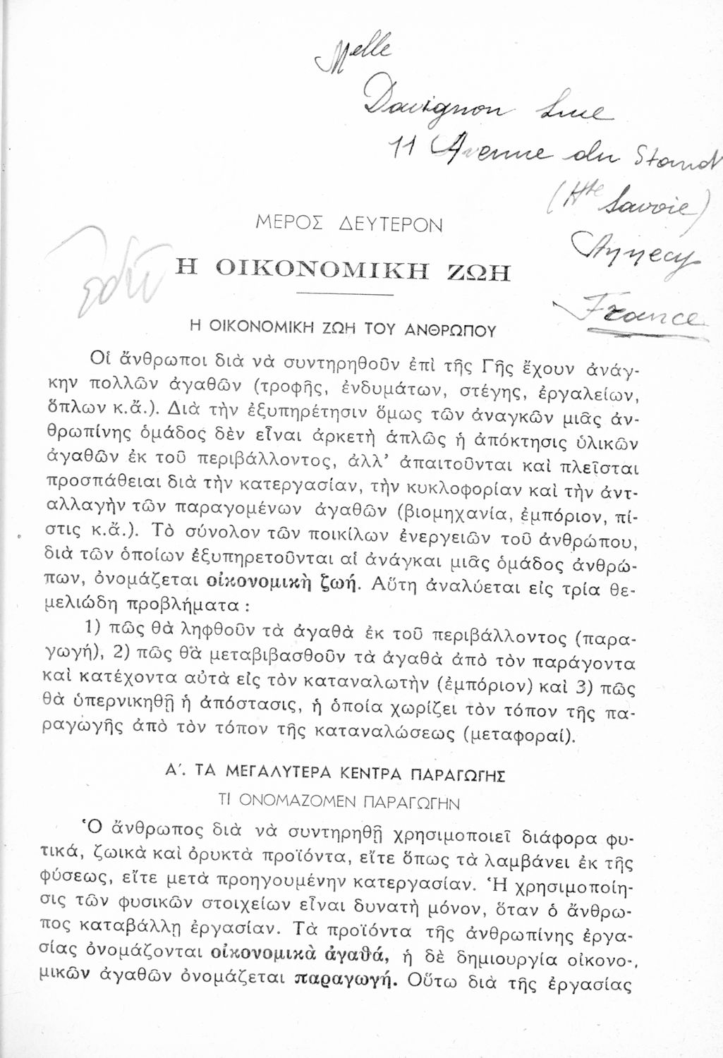 Σχολικό εγχειρίδιο Γεωγραφίας Ε΄ Εξαταξίου Γυμνασίου που εστιάζει την ανθρωπογεωγραφία, με έμφαση σε θέματα μετανάστευσης και πληθυσμιακής αύξησης, και την οικονομική γεωγραφία με έμφαση σε θέματα γεωργικής, κτηνοτροφικής, δασικής και βιομηχανικής παραγωγής. Περιέχει και στοιχεία για τον ελληνικό τουρισμό και εμπόριο.
