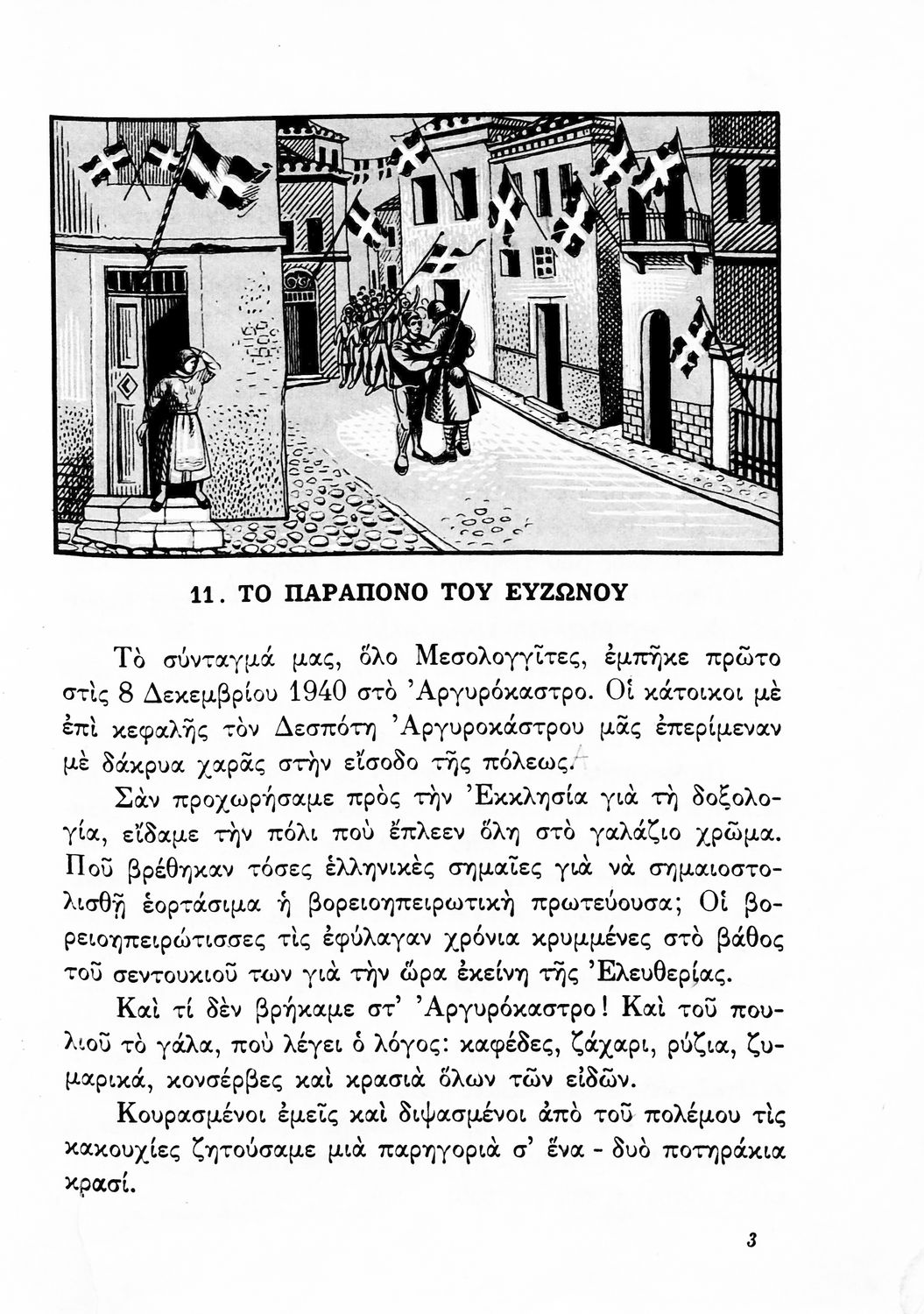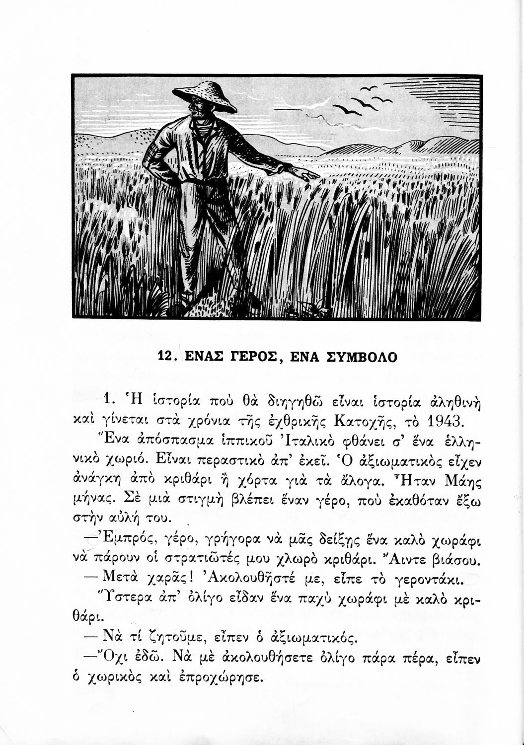 Αναγνωστικό Δ΄ Δημοτικού που περιέχει πεζά και ποιήματα εμπνευσμένα από την ελληνική ιστορία και μυθολογία, την κοινωνική ζωή και την ελληνική φύση.