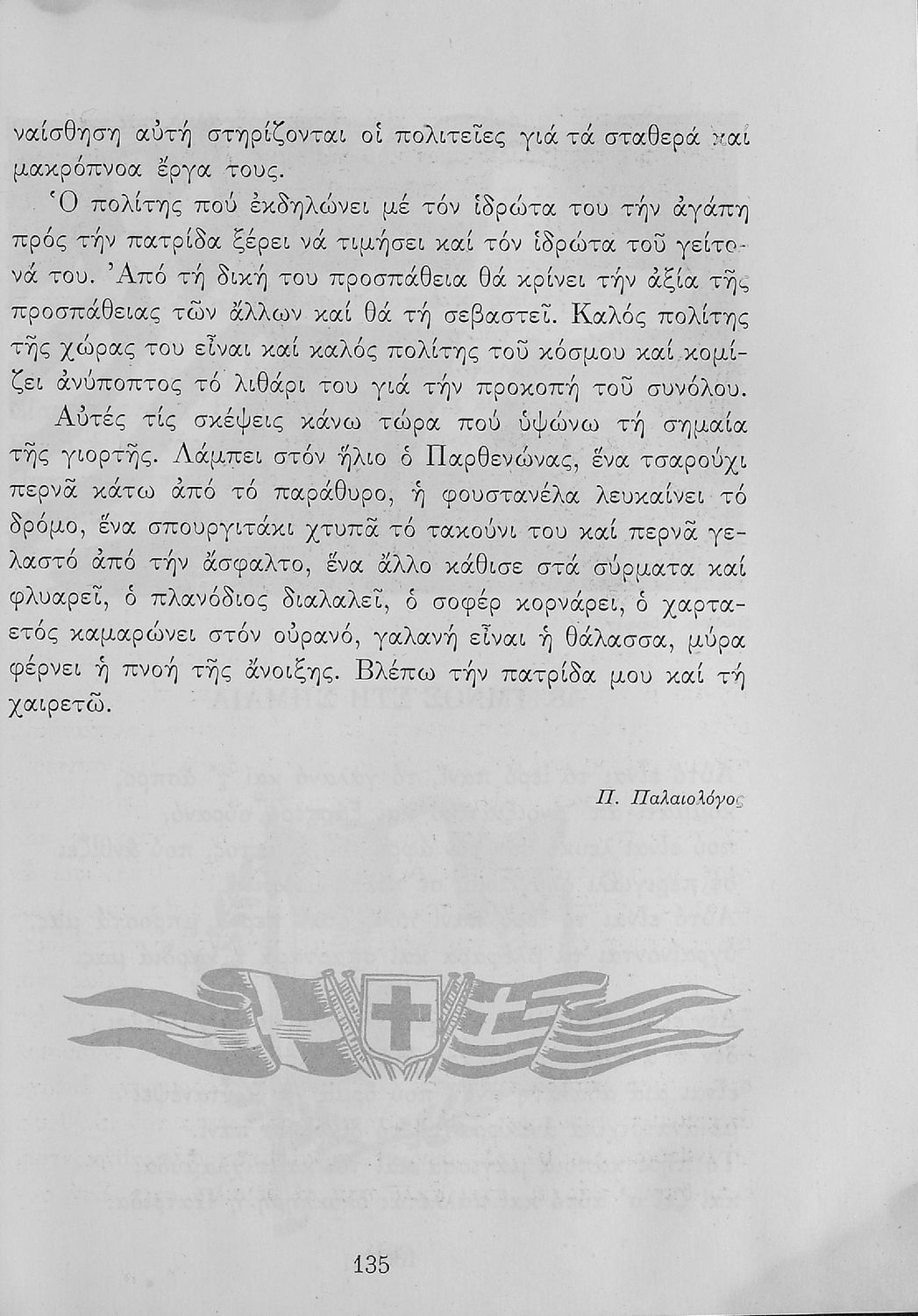 Αναγνωστικό ΣΤ΄ Δημοτικού που αντλεί τα θέματά του από τη θρησκευτική, εθνική, οικογενειακή, κοινωνική και επαγγελματική ζωή και την σύγχρονη ελληνική ιστορία. Περιέχει και λεξιλόγιο.