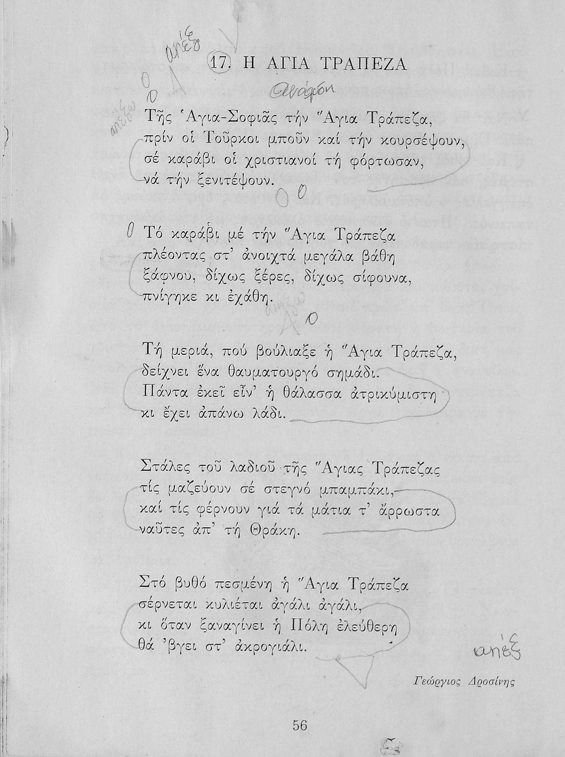 Μιχ. Δ. Στασινόπουλος, Γιώργος Π. Σαββίδης, Αριστείδης Βουγιούκας, Αλέξης Δημαράς, Καλή Δοξιάδη, Γιώργος Ιωάννου, Λίνα Κάσδαγλη, Καλλιόπη Μουστάκα