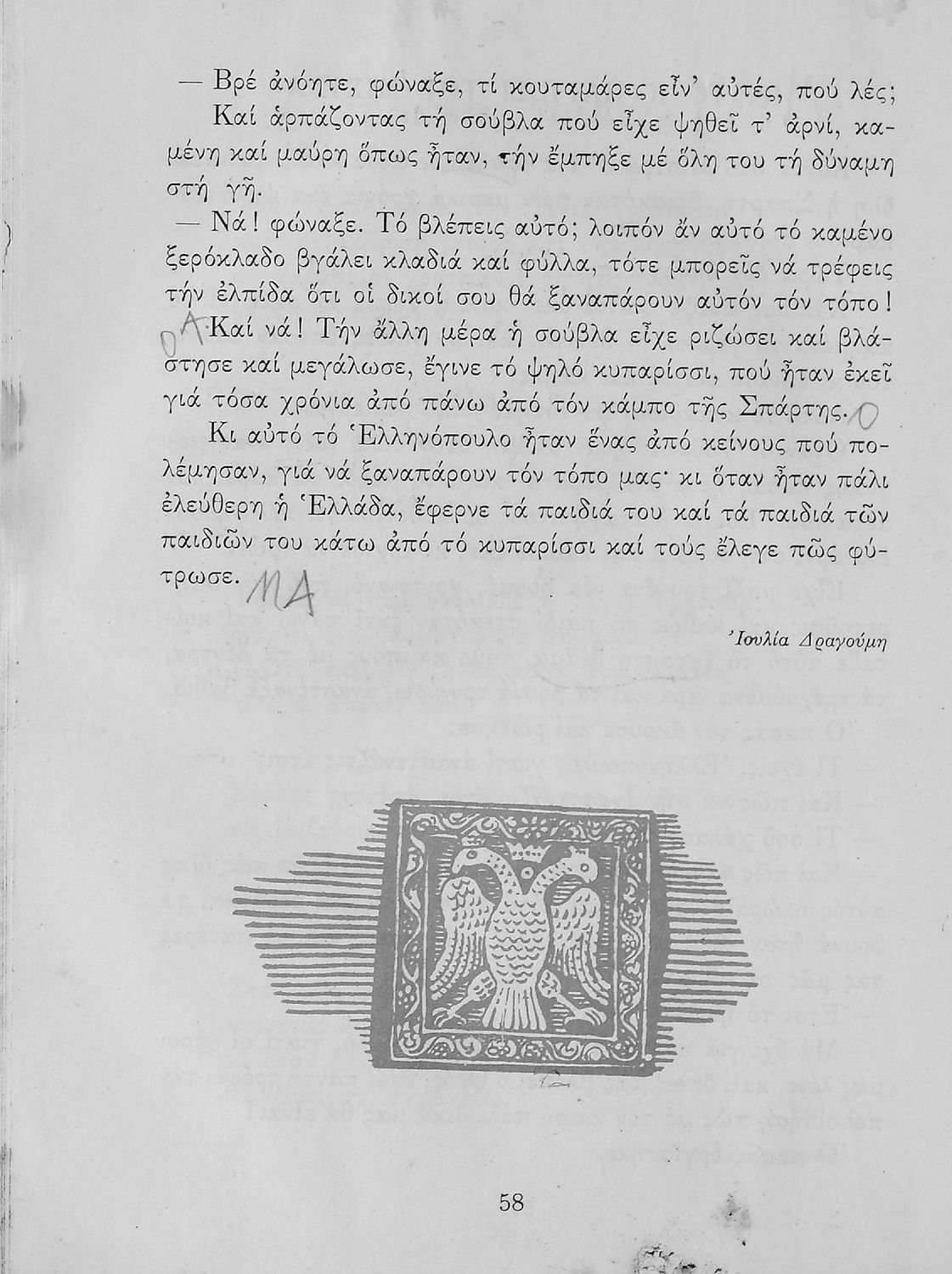 Αναγνωστικό της ΣΤ΄ Δημοτικού που κυκλοφόρησε σε 7.000 αντίτυπα 25 ημέρες πριν την 4η Αυγούστου 1936, οπότε κατά την επόμενη σχολική χρονιά διδάχτηκε ελάχιστα και η έκδοσή του με αυτή την μορφή σταμάτησε.