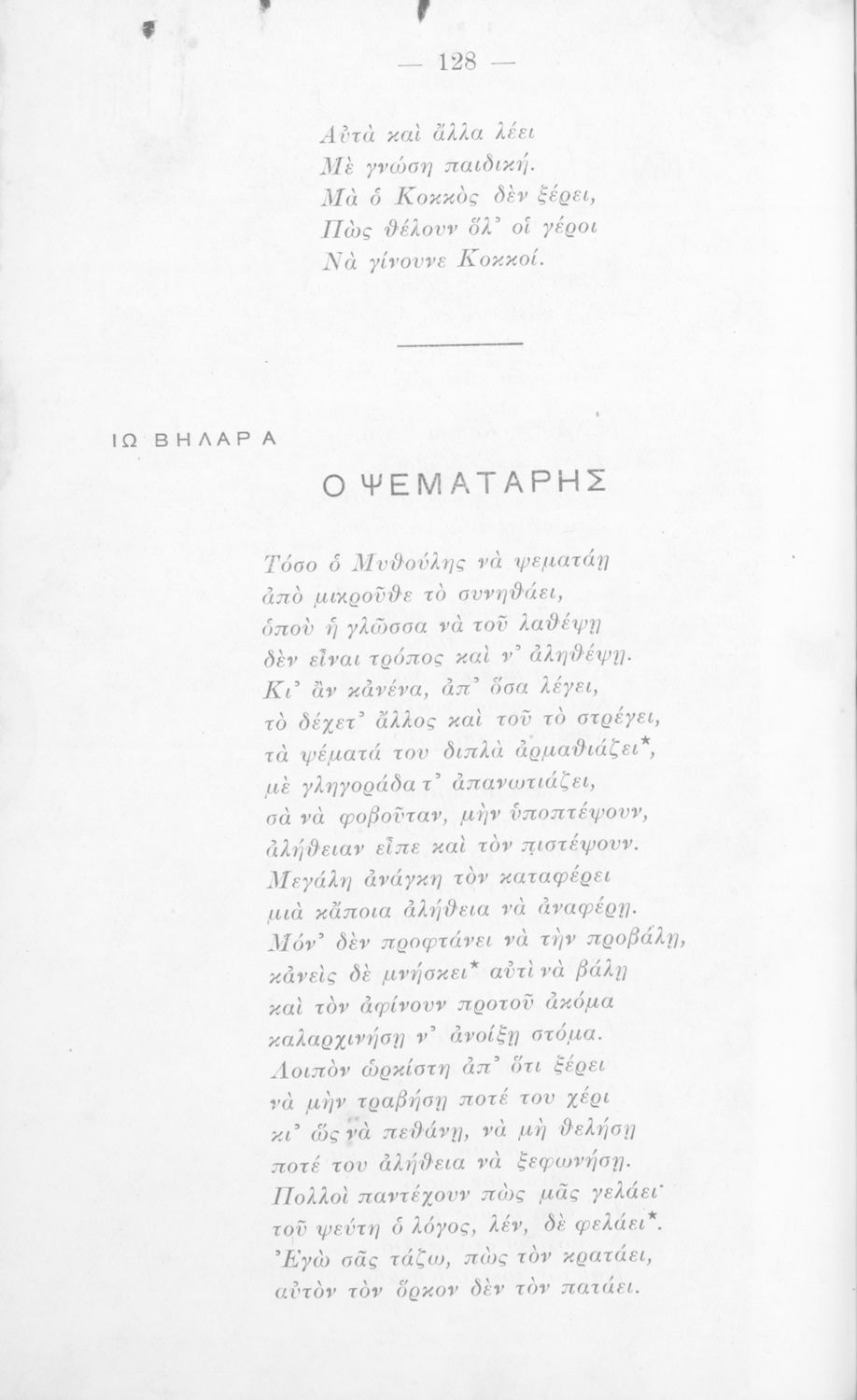 Σχετιζόμενοι όροι:  Παπαντωνίου, Πολέμης, Παλαμάς, Βηλαράς