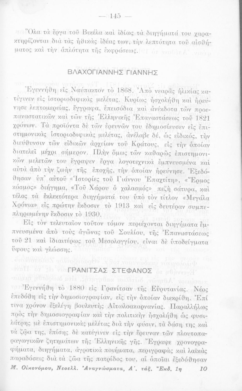 LDR 01333 2200205 4500 035 ## _a01-18167 040 ## _aΙνστιτούτο Εκπαιδευτικής Πολιτικής 041 ## _ael 100 ## _aΜιχαήλ Χ. Οικονόμου 110 ## _a18167 245 0# _aΝεοελληνικά αναγνώσματα διά την Α΄ τάξιν των Εξαταξίων Γυμνασίων 260 ## _aΑθήνα _bΙωάννης Δ. Κολλάρος και ΣΙΑ, Βιβλιοπωλείο της "Εστίας" _c1931 300 ## _a174 _bΕικόνες (ασπρόμαυρες) _c20 520 ## _aΣχολικό εγχειρίδιο Νέων Ελληνικών Α΄ Γυμνασίου που περιέχει πεζά και ποιήματα Ελλήνων συγγραφέων εμπνευσμένα από την κοινωνική ζωή, την σύγχρονη ελληνική ιστορία, και την ελληνική φύση. Περιέχει παράρτημα με βιογραφίες των συγγραφέων και λεξιλόγιο. 521 ## _aΑ' Γυμνασίου 522 ## _aΕλλάδα 546 ## _aΔημοτική, Καθαρεύουσα 563 ## _aΣκληρό Εξώφυλλο 583 ## _a34941/27-7-1931 _c1931 650 #4 _aΒηλαράς _aΠαλαμάς _aΠαπαντωνίου _aΠολέμης