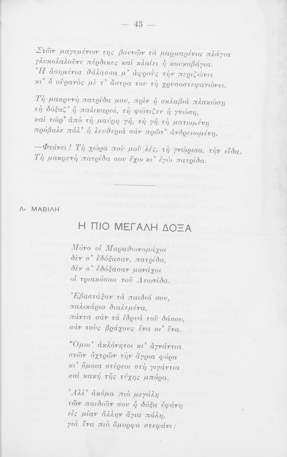 Σχετιζόμενοι όροι:  Παπαντωνίου, Πολέμης, Παλαμάς, Βιλαράς