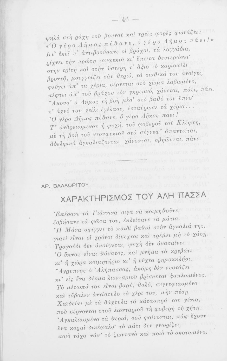 Σχετιζόμενοι όροι:  Παπαντωνίου, Πολέμης, Παλαμάς, Βηλαράς