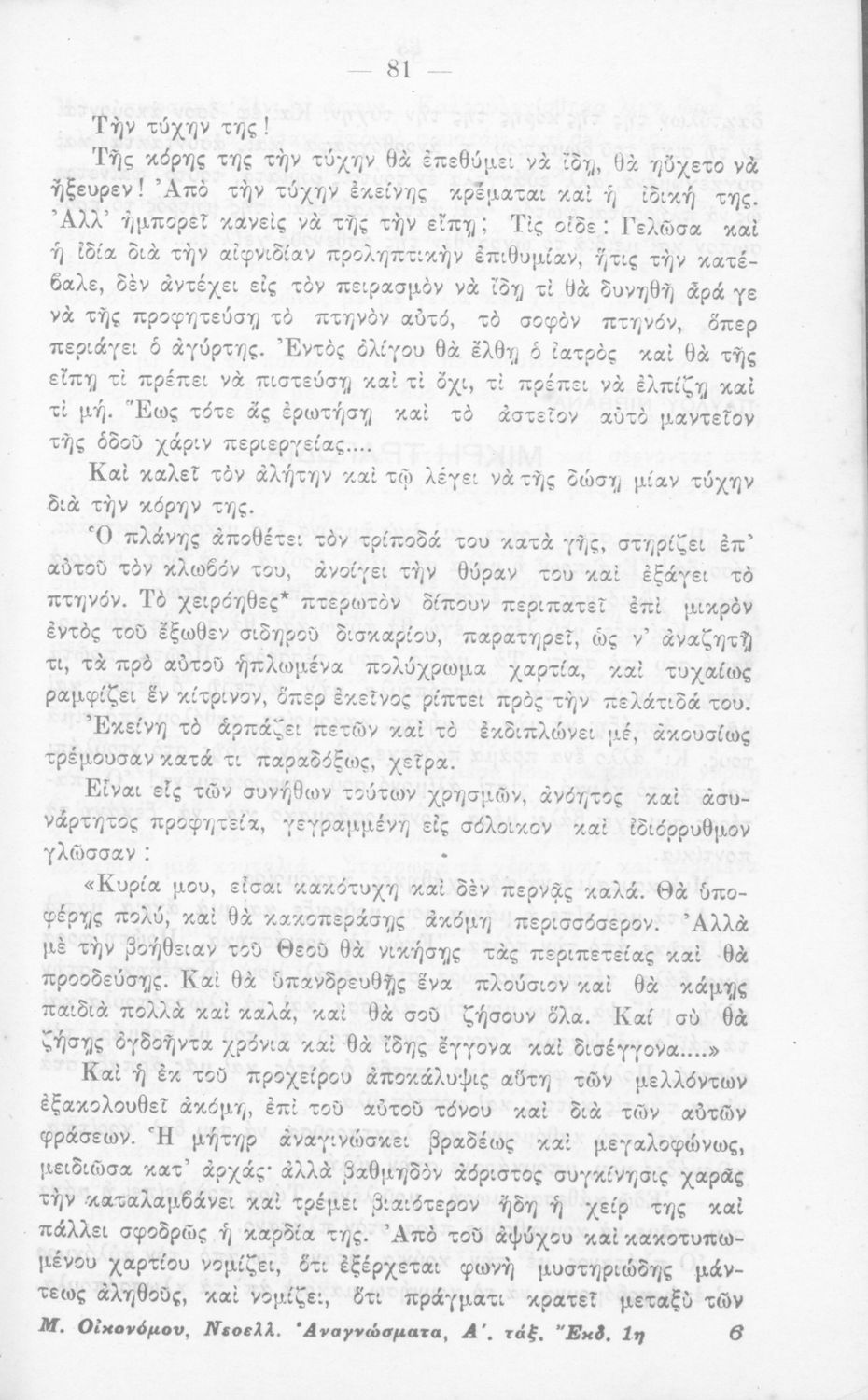 Τίτλος: Νεοελληνικά αναγνώσματα διά την Α΄ τάξιν των Εξαταξίων Γυμνασίων