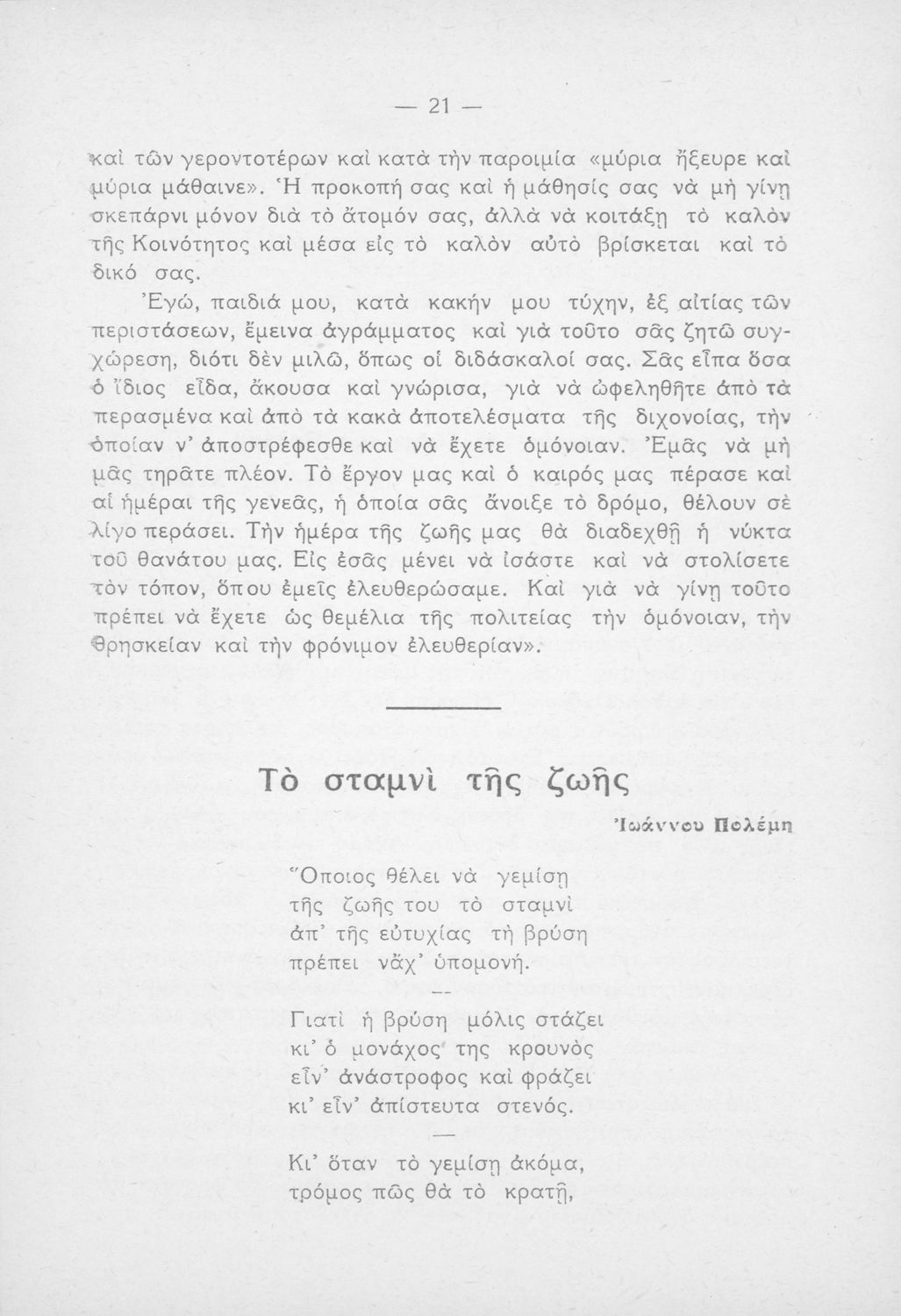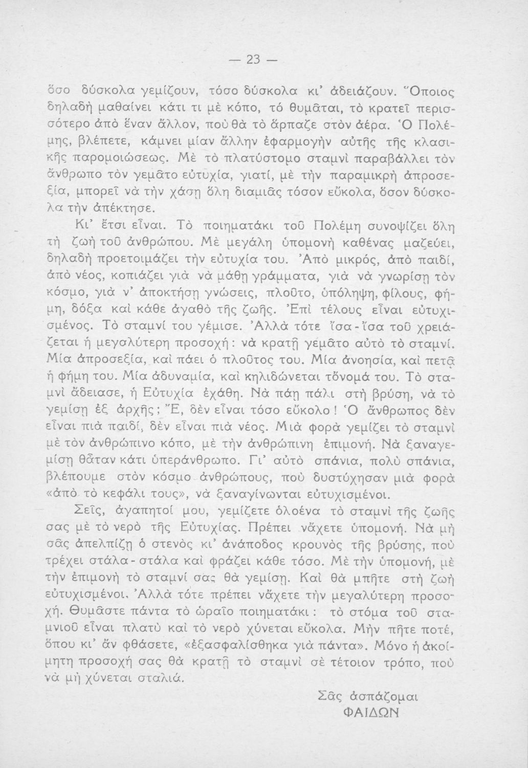 Σχολικό εγχειρίδιο Νέων ελληνικών για τις Τεχνικές και Επαγγελματικές Σχολές που περιέχει πεζά και ποιήματα νέων και αρχαίων Ελλήνων συγγραφέων με θέματα από την αρχαία ελληνική ιστορία και μυθολογία, την σύγχρονη ελληνική ιστορία, τη θρησκευτική παράδοση, την καθημερινή ζωή και τεχνικά και επαγγελματικά θέματα.