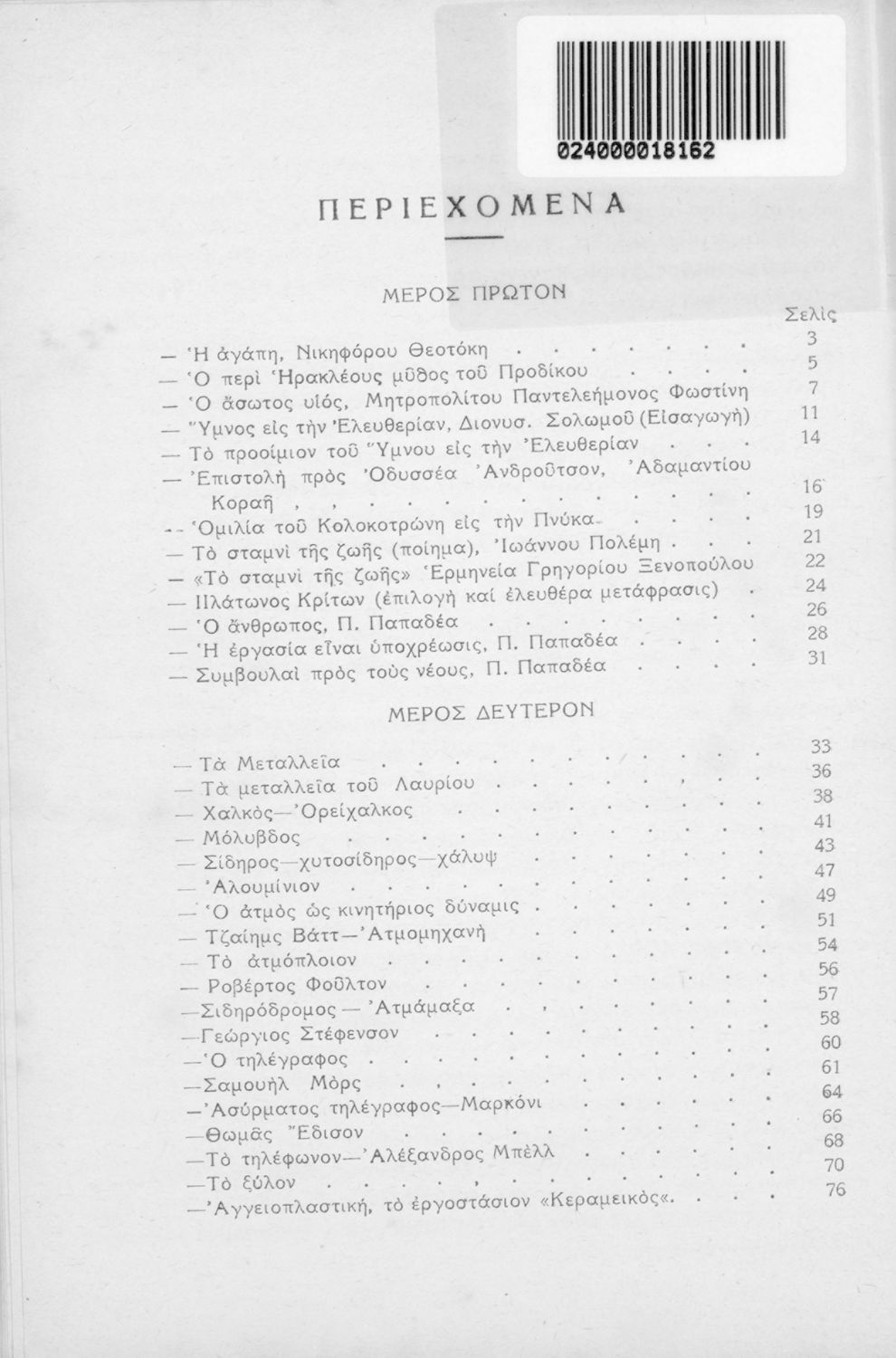 Έτος έκδοσης: 1952 Τόπος έκδοσης: Αθήνα |
