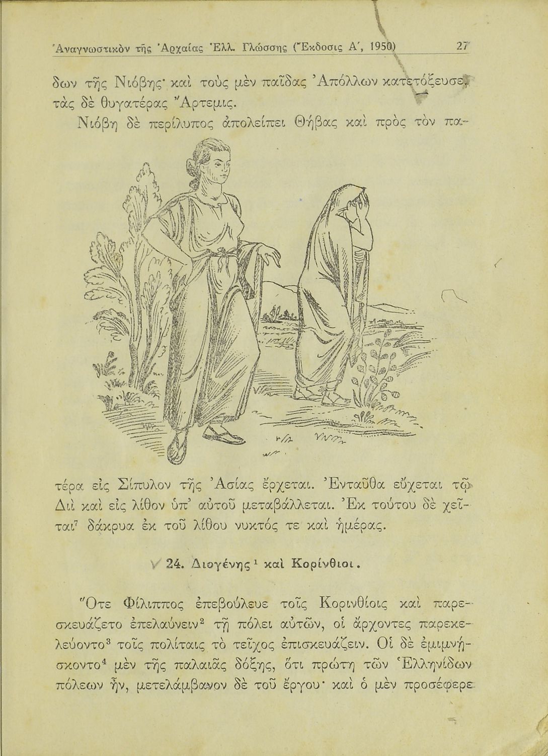 Σχολικό εγχειρίδιο Αρχαίων Ελληνικών Γυμνασίου που περιέχει κείμενα βασισμένα στην αρχαία ελληνική ιστορία και μυθολογία και γραμματικές, συντακτικές και ετυμολογικές παρατηρήσεις.