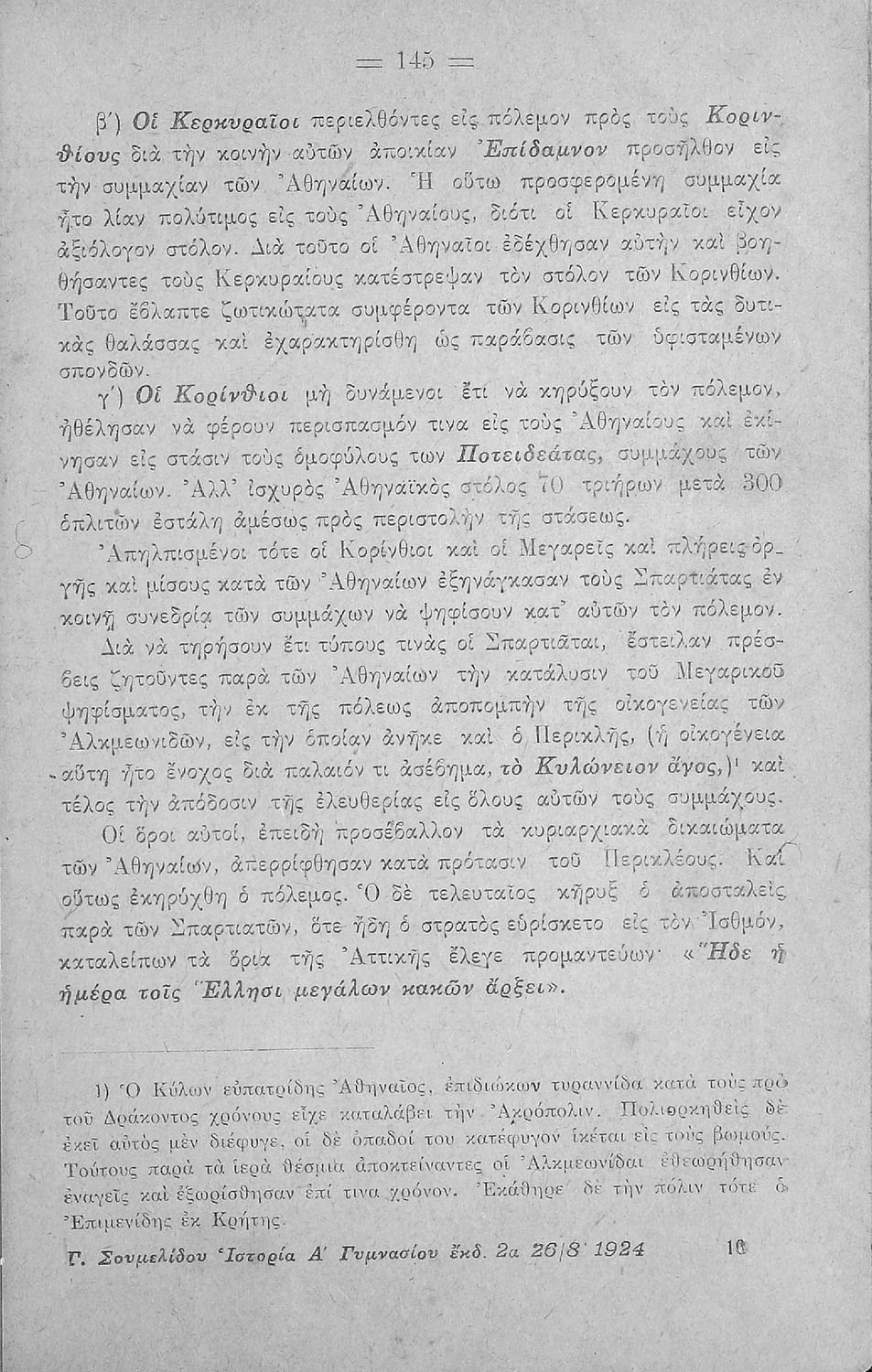 LDR 01426 2200217 4500 035 ## _a01-18174 040 ## _aΙνστιτούτο Εκπαιδευτικής Πολιτικής 041 ## _ael 100 ## _aΓεώργιος Δ. Σουμελίδης 110 ## _a18174 245 0# _aΕλληνική Ιστορία. Από των αρχαιοτάτων χρόνων μέχρι της εν Ιψώ μάχης εγκεκριμένη δια την Α΄ τάξιν του Γυμνασίου και την αντιστοίχων τάξιν των λοιπών σχολείων της Μέσης Εκπαιδεύσεως 250 ## _a2η Έκδοση 260 ## _aΑθήνα _bΒιβλιοπωλείο Ιωάννη Ν. Σιδέρη _c1924 300 ## _a224 _bΣκίτσα (ασπρόμαυρα) 520 ## _aΣχολικό εγχειρίδιο Ιστορίας Α΄ Γυμνασίου που περιλαμβάνει την περίοδο από τους ηρωικούς και μυθικούς χρόνους μέχρι το τέλος της Μακεδονικής Ηγεμονίας. 521 ## _aΑ' Γυμνασίου 522 ## _aΕλλάδα 546 ## _aΚαθαρεύουσα 563 ## _aΣκληρό Εξώφυλλο 583 ## _a5482/23-2-1922 _c1922 650 #4 _aΑίγυπτος _aΑποικία _aΔωριείς _aΜ Αλέξανδρος _aΠελασγοί _aΠερικλής _aΠερσικοί πόλεμοι _aΣπάρτη