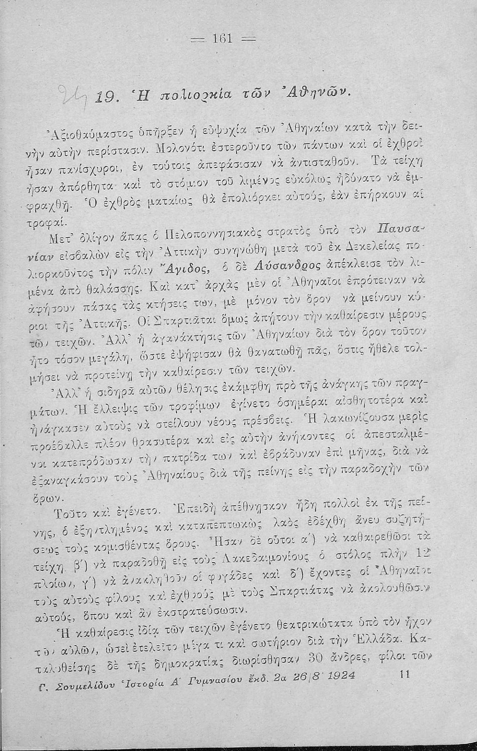 Βαθμίδα εκπαίδευσης: Δευτεροβάθμια Τάξη: Α' Γυμνασίου Μάθημα: Ιστορία Γλώσσα: Καθαρεύουσα Παρουσίαση περιεχομένου: Σχολικό εγχειρίδιο Ιστορίας Α΄ Γυμνασίου που περιλαμβάνει την περίοδο από τους ηρωικούς και μυθικούς χρόνους μέχρι το τέλος της Μακεδονικής Ηγεμονίας. |