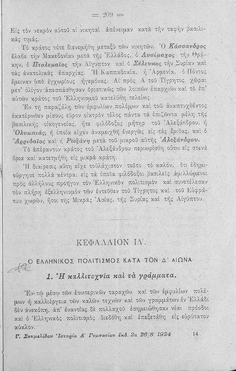 Ελληνική Ιστορία. Από των αρχαιοτάτων χρόνων μέχρι της εν Ιψώ μάχης εγκεκριμένη δια την Α΄ τάξιν του Γυμνασίου και την αντιστοίχων τάξιν των λοιπών σχολείων της Μέσης Εκπαιδεύσεως