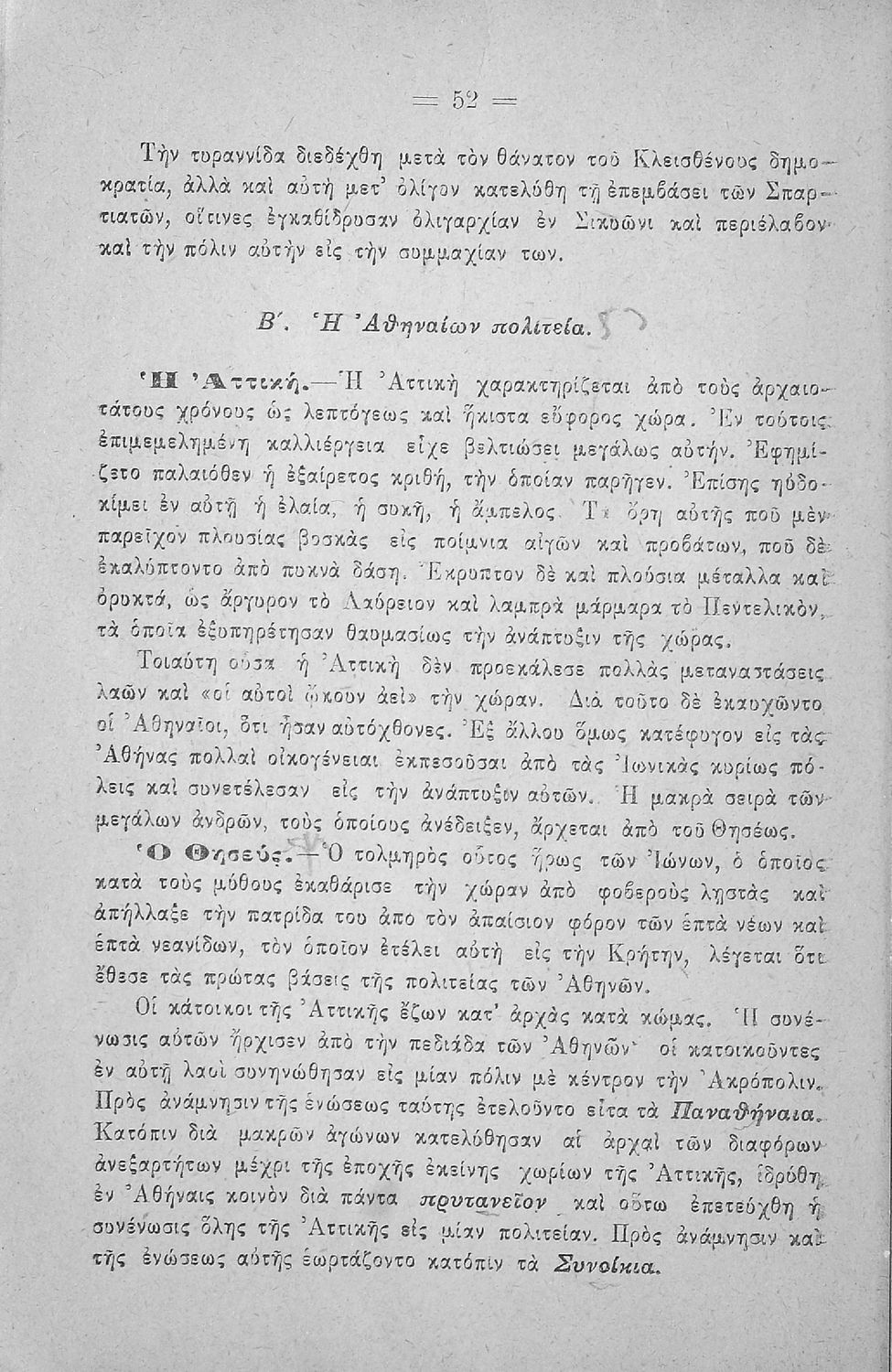 Βαθμίδα εκπαίδευσης: Δευτεροβάθμια Τάξη: Α' Γυμνασίου Μάθημα: Ιστορία Γλώσσα: Καθαρεύουσα Παρουσίαση περιεχομένου: Σχολικό εγχειρίδιο Ιστορίας Α΄ Γυμνασίου που περιλαμβάνει την περίοδο από τους ηρωικούς και μυθικούς χρόνους μέχρι το τέλος της Μακεδονικής Ηγεμονίας. |