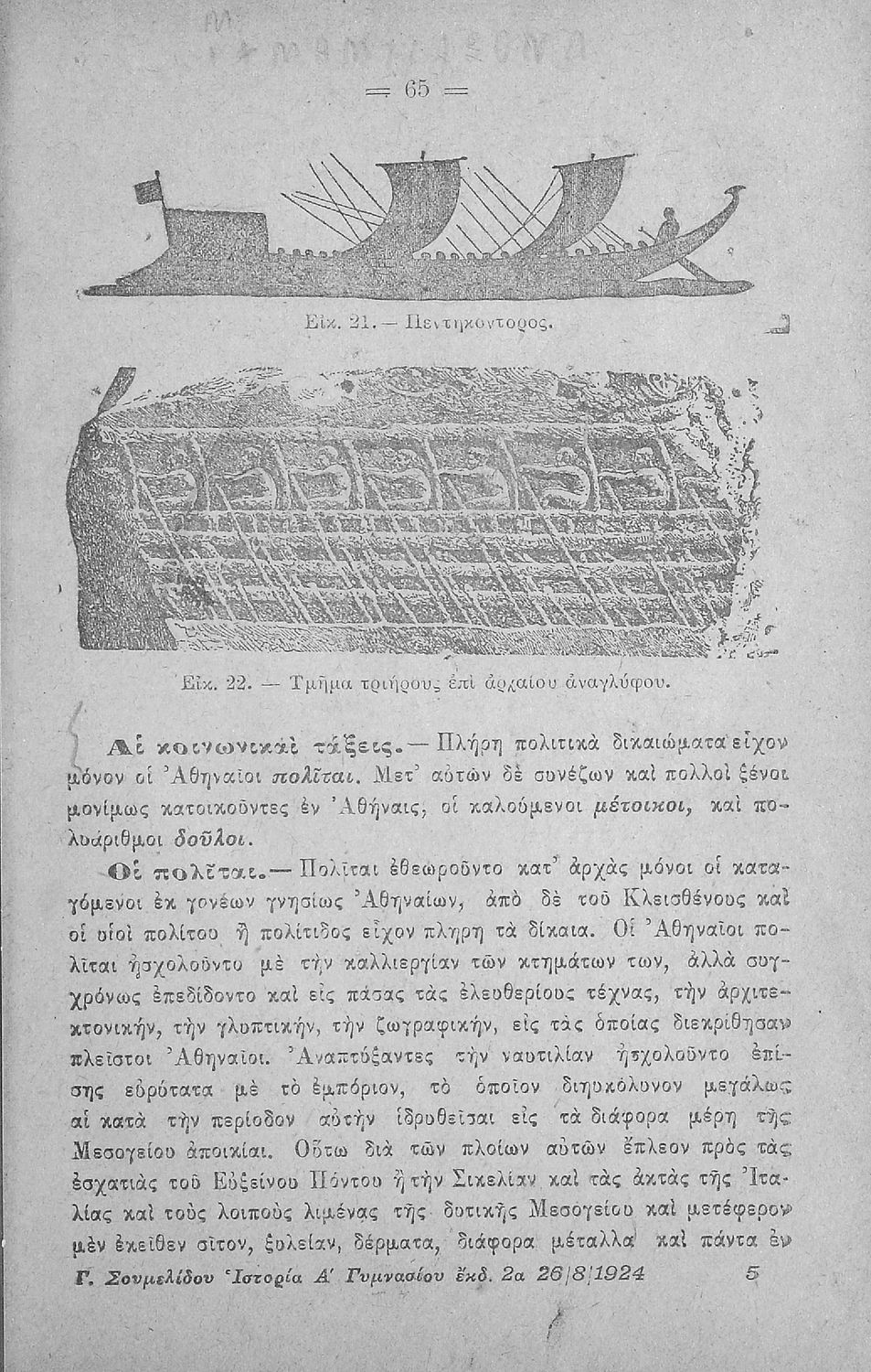 Ελληνική Ιστορία. Από των αρχαιοτάτων χρόνων μέχρι της εν Ιψώ μάχης εγκεκριμένη δια την Α΄ τάξιν του Γυμνασίου και την αντιστοίχων τάξιν των λοιπών σχολείων της Μέσης Εκπαιδεύσεως