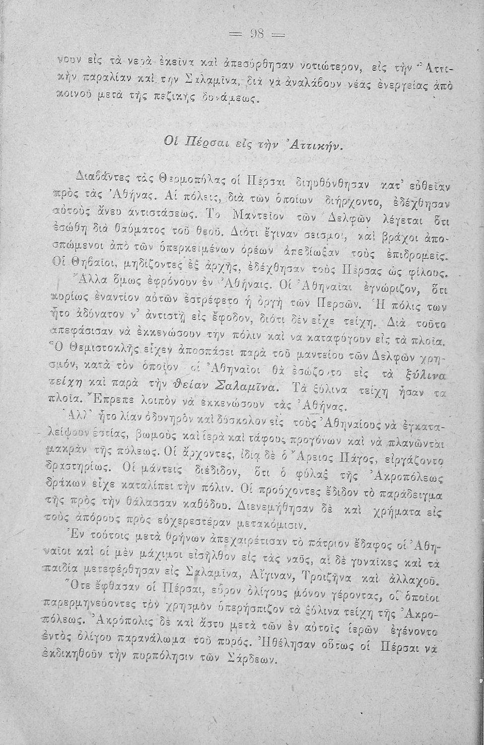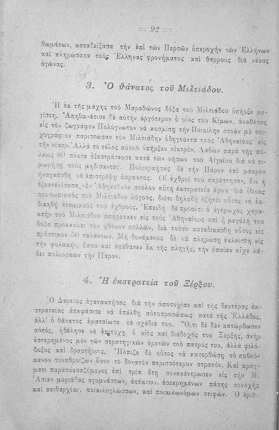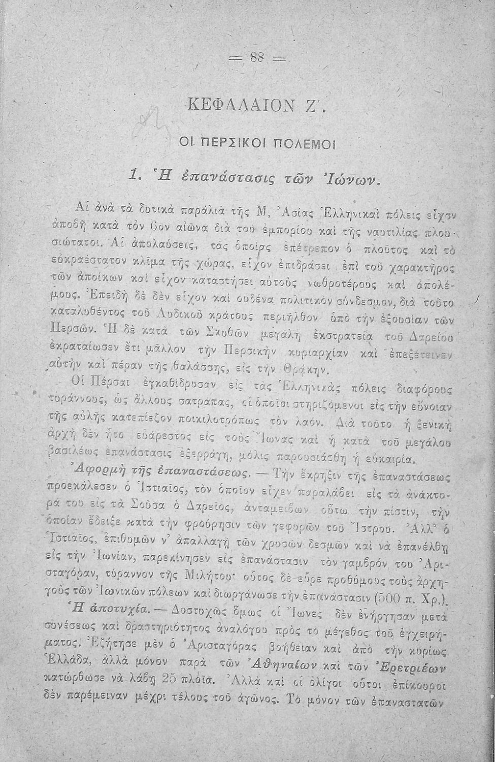 Βαθμίδα εκπαίδευσης: Δευτεροβάθμια Τάξη: Α' Γυμνασίου Μάθημα: Ιστορία Γλώσσα: Καθαρεύουσα Παρουσίαση περιεχομένου: Σχολικό εγχειρίδιο Ιστορίας Α΄ Γυμνασίου που περιλαμβάνει την περίοδο από τους ηρωικούς και μυθικούς χρόνους μέχρι το τέλος της Μακεδονικής Ηγεμονίας. |