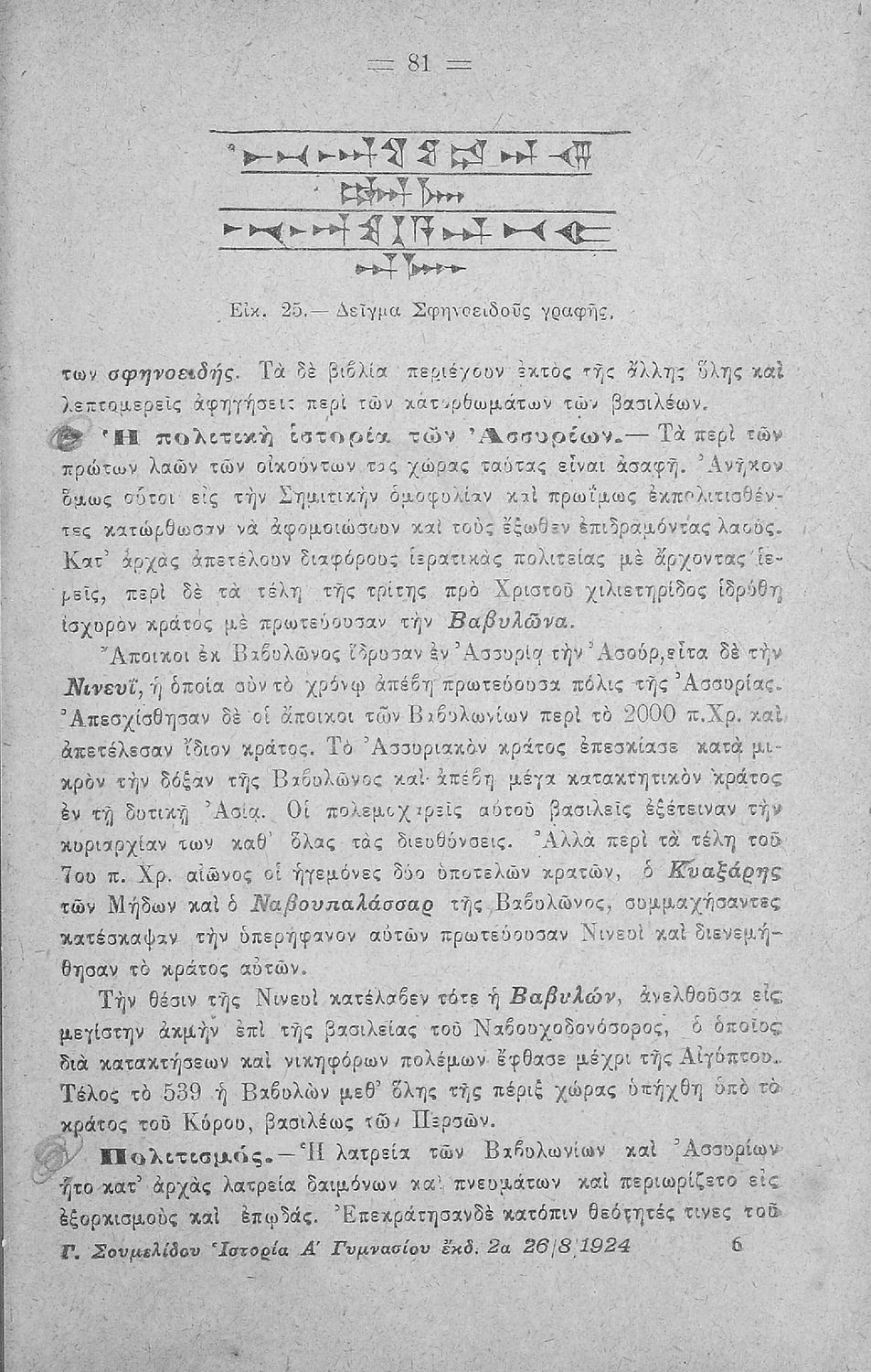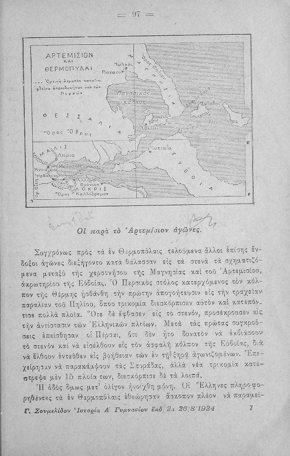 Κωδικός αναγνώρισης: 01-18174 Τίτλος: Ελληνική Ιστορία. Από των αρχαιοτάτων χρόνων μέχρι της εν Ιψώ μάχης εγκεκριμένη δια την Α΄ τάξιν του Γυμνασίου και την αντιστοίχων τάξιν των λοιπών σχολείων της Μέσης Εκπαιδεύσεως Συγγραφέας: Γεώργιος Δ. Σουμελίδης Μέγεθος και υπόστρωμα: Σχολικό εγχειρίδιο, σκληρό εξώφυλλο, 224 σελίδες. Σκίτσα (ασπρόμαυρα). |