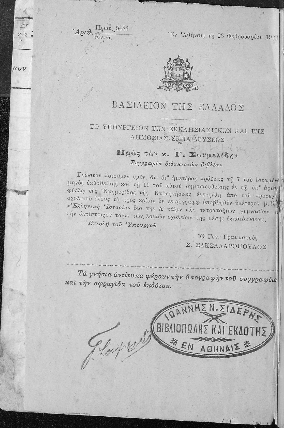 Υπουργική απόφαση / Σύμβαση: 5482/23-2-1922