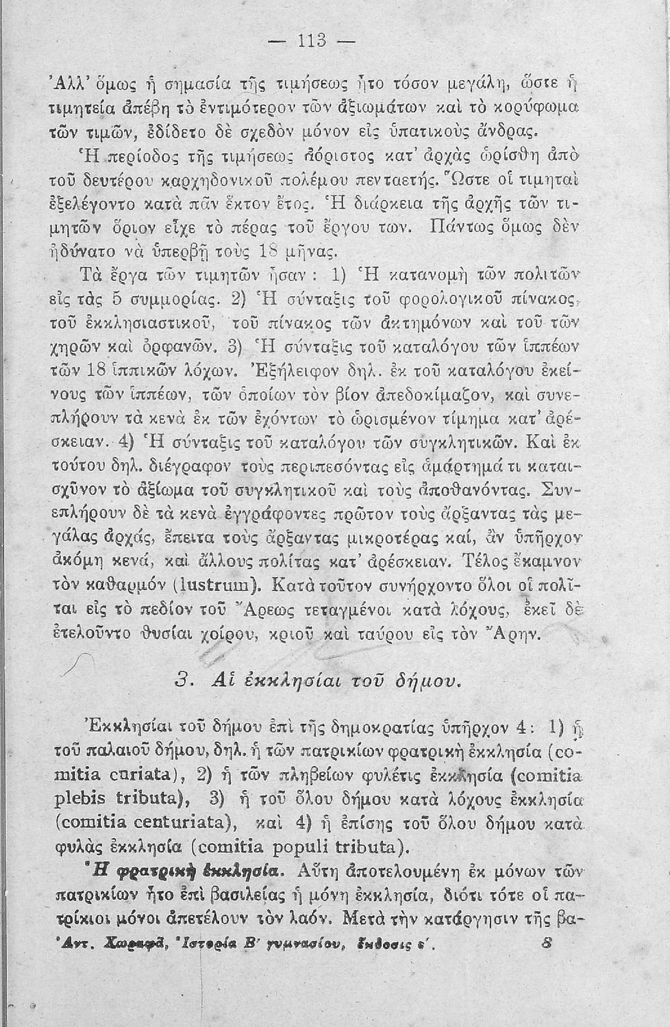 Βαθμίδα εκπαίδευσης: Δευτεροβάθμια Τάξη: Β' Γυμνασίου Μάθημα: Ιστορία Γλώσσα: Καθαρεύουσα Παρουσίαση περιεχομένου: Σχολικό εγχειρίδιο Ιστορίας Β΄ Γυμνασίου που καλύπτει την περίοδο από την κατάρρευση της Μακεδονικής Ηγεμονίας μέχρι τα χρόνια του Μ. Κωνσταντίνου και του Θεοδοσίου του Μεγάλου. Περιέχει χρονολογικό πίνακα των πιο σημαντικών γεγονότων. |
