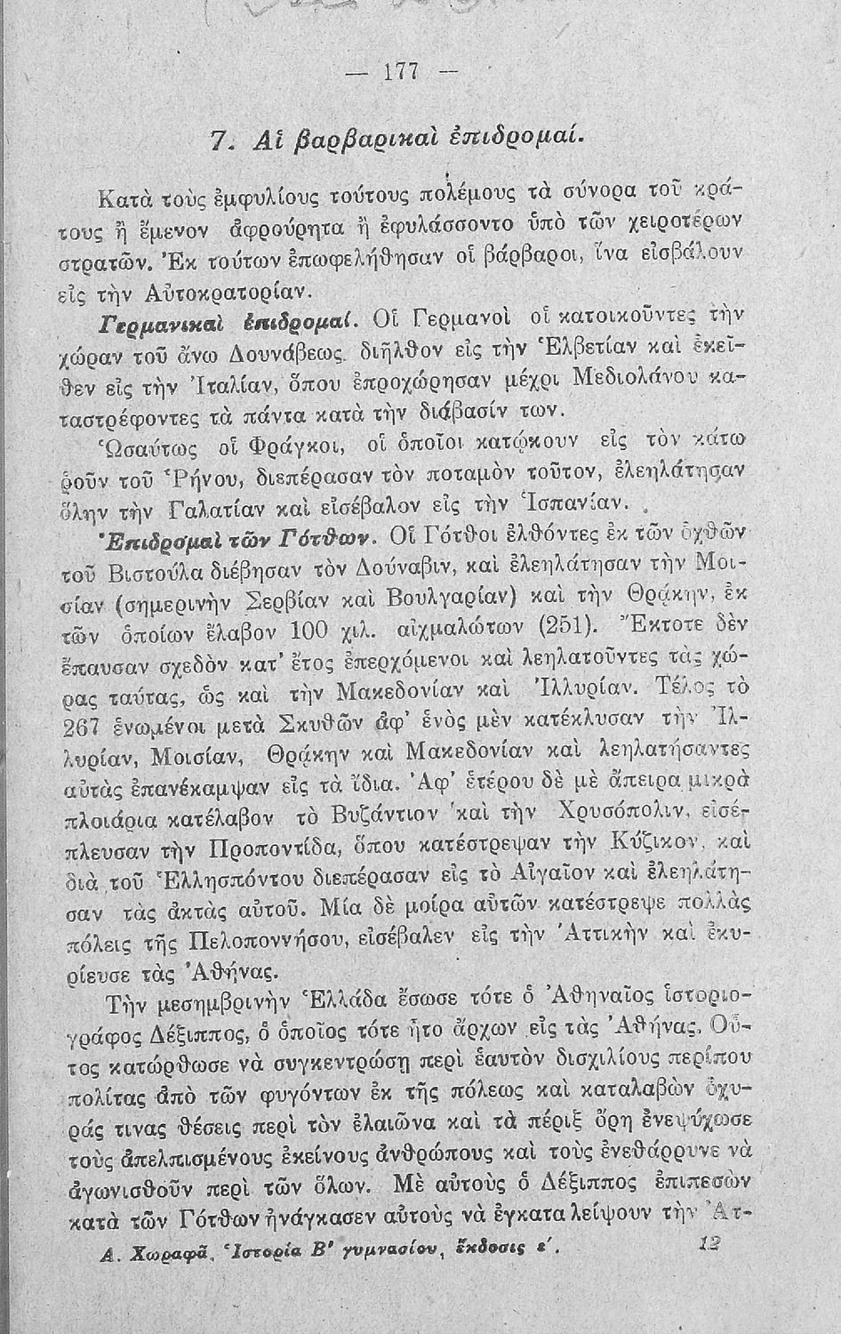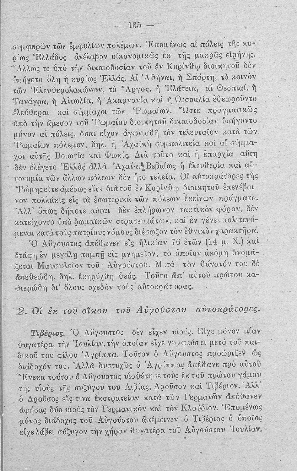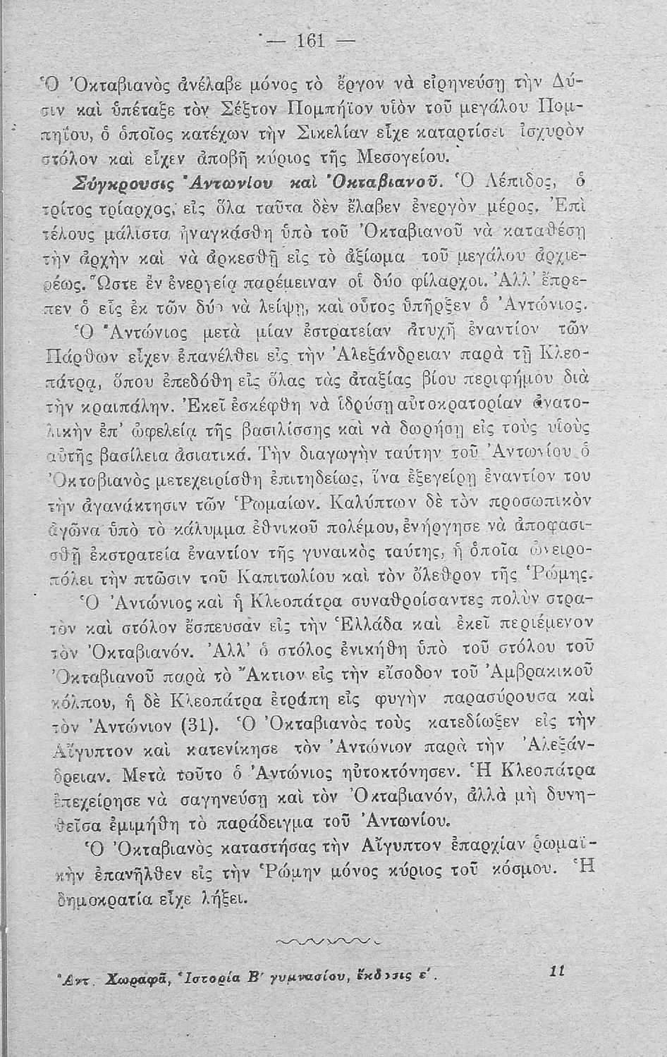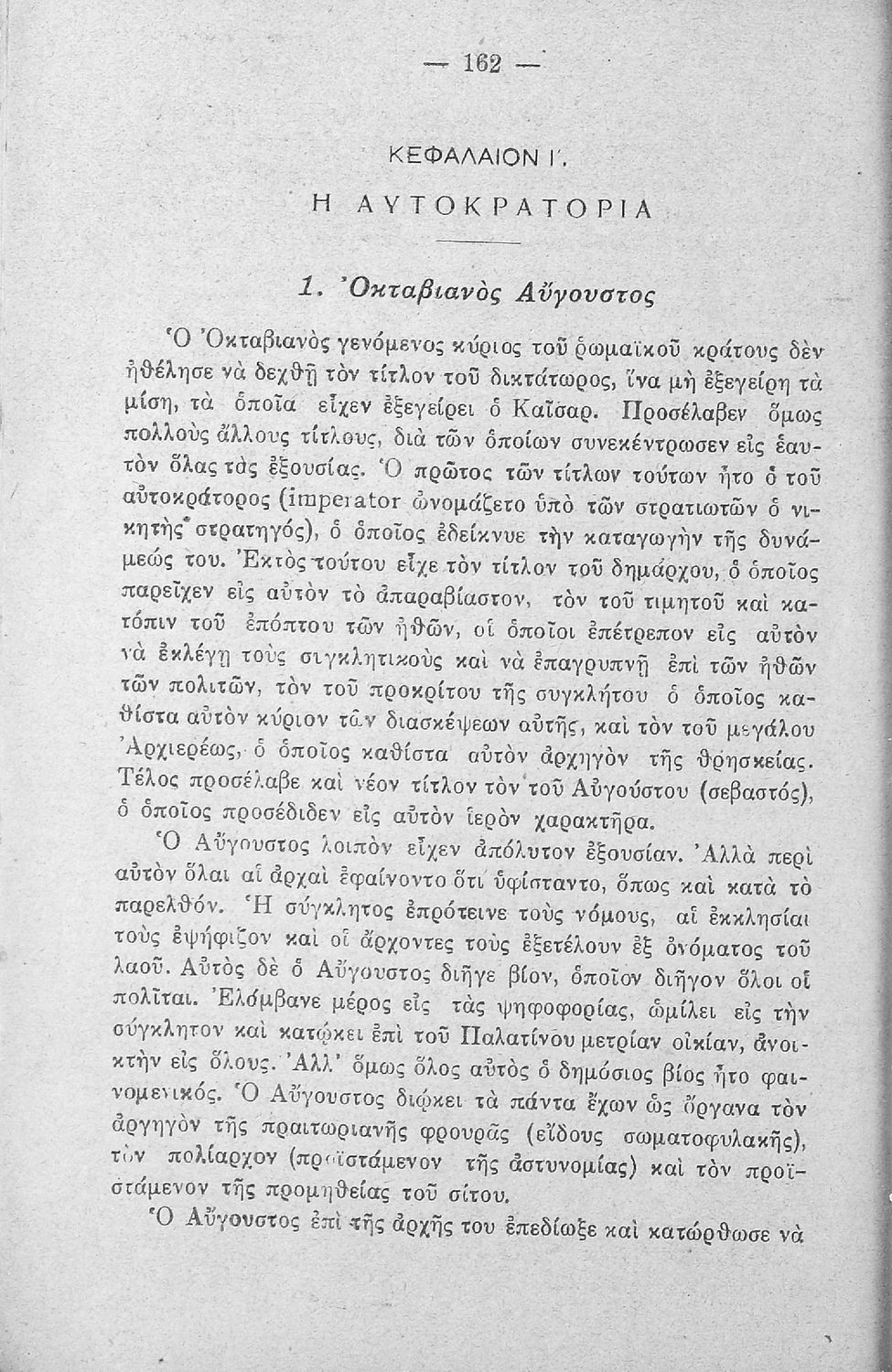Ιστορία Ελληνική και Ρωμαϊκή. Από του 3ου π.Χ αιώνος, από της ιδρύσεως της Ρώμης μέχρι του θανάτου Θεοδόσιου του Μεγάλου. Δια την Β΄ Τάξιν των Γυμνασίων και την αντίστοιχον των λοιπών Σχολείων της Μέσης Εκπαιδεύσεως.