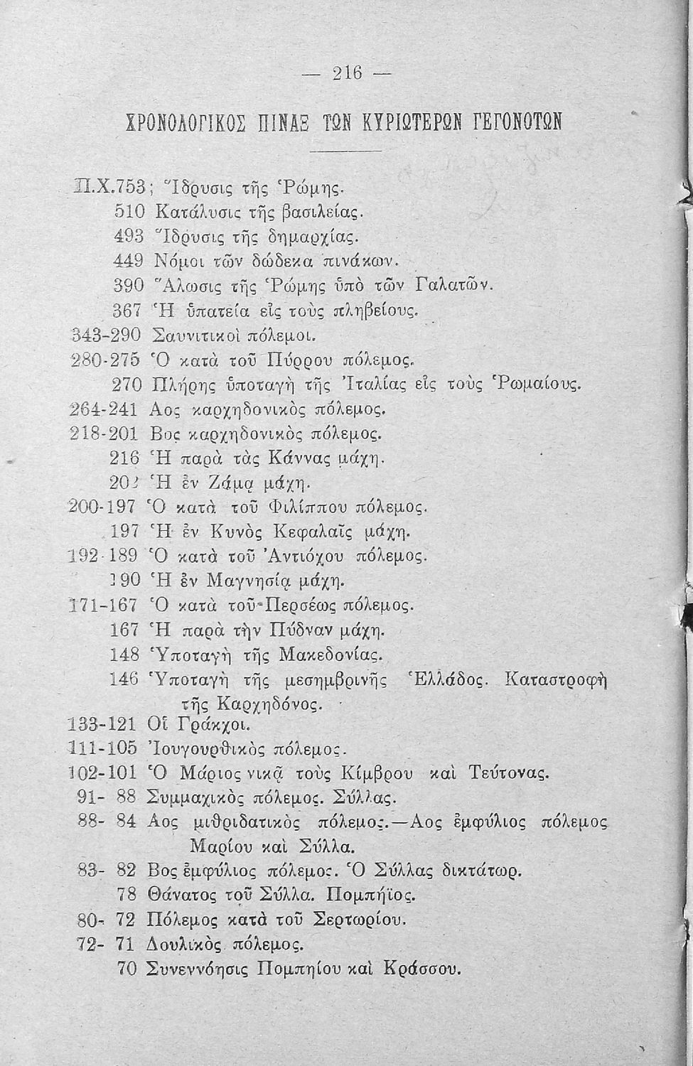 Ιστορία Ελληνική και Ρωμαϊκή. Από του 3ου π.Χ αιώνος, από της ιδρύσεως της Ρώμης μέχρι του θανάτου Θεοδόσιου του Μεγάλου. Δια την Β΄ Τάξιν των Γυμνασίων και την αντίστοιχον των λοιπών Σχολείων της Μέσης Εκπαιδεύσεως.
