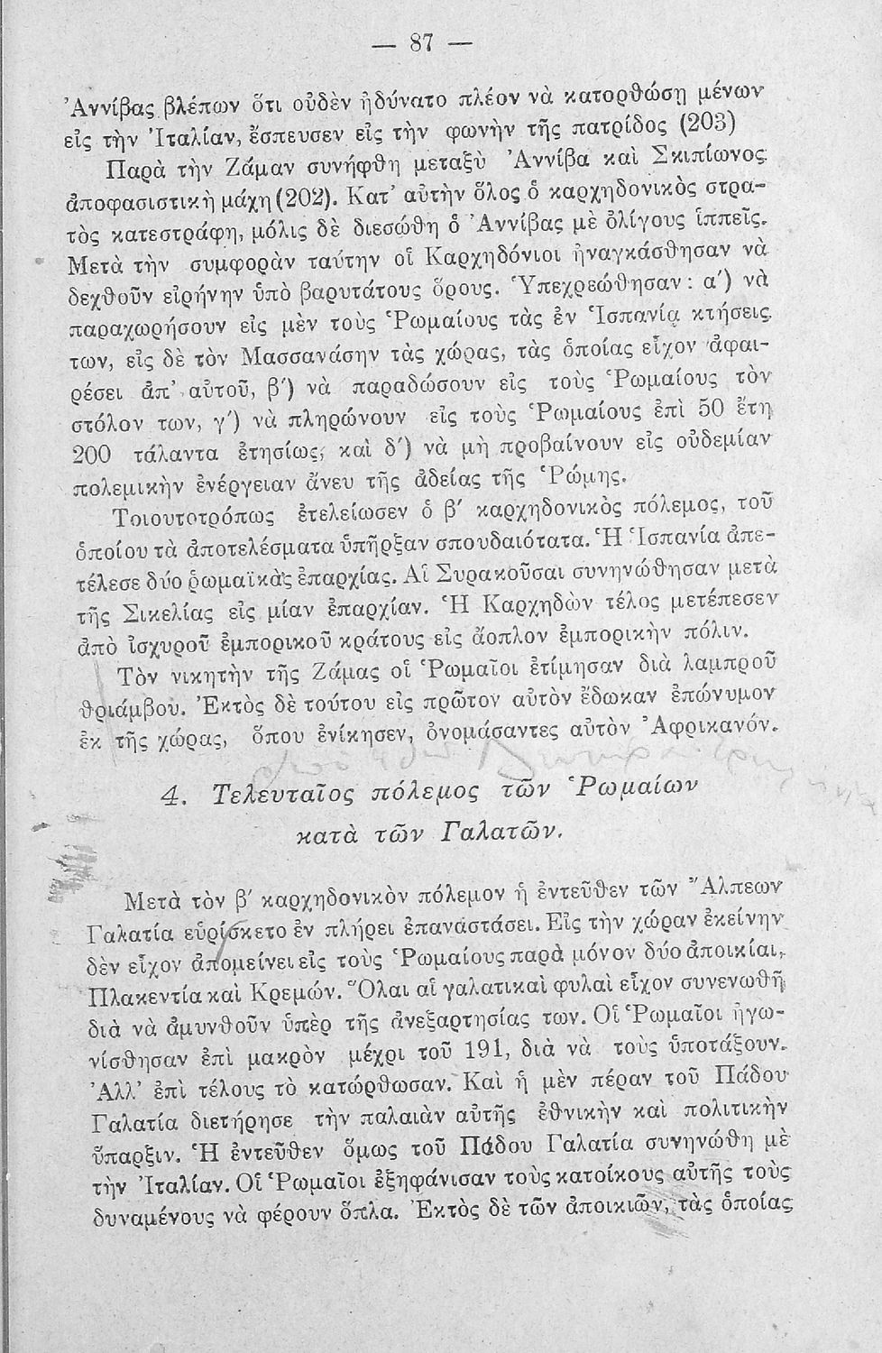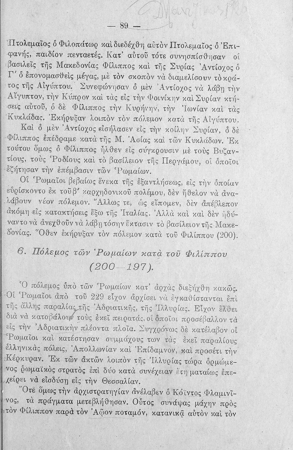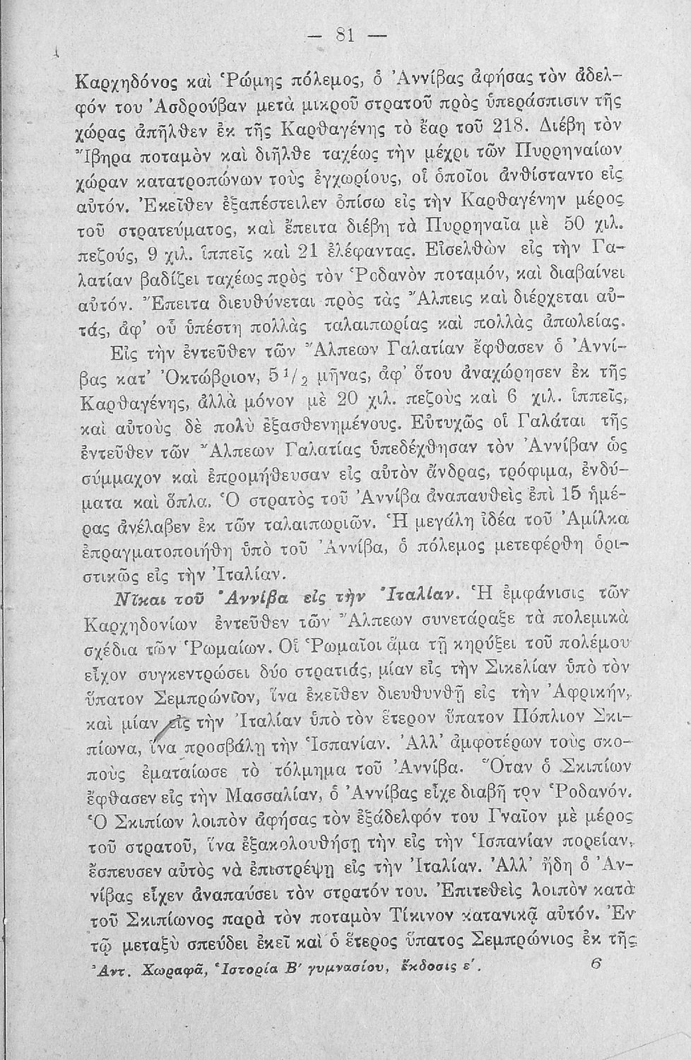 Βαθμίδα εκπαίδευσης: Δευτεροβάθμια Τάξη: Β' Γυμνασίου Μάθημα: Ιστορία Γλώσσα: Καθαρεύουσα Παρουσίαση περιεχομένου: Σχολικό εγχειρίδιο Ιστορίας Β΄ Γυμνασίου που καλύπτει την περίοδο από την κατάρρευση της Μακεδονικής Ηγεμονίας μέχρι τα χρόνια του Μ. Κωνσταντίνου και του Θεοδοσίου του Μεγάλου. Περιέχει χρονολογικό πίνακα των πιο σημαντικών γεγονότων. |