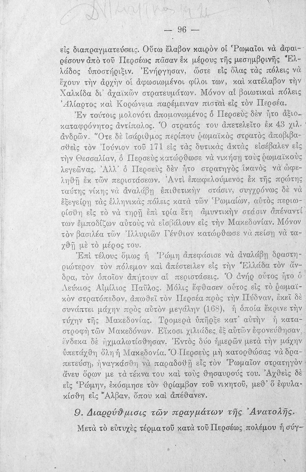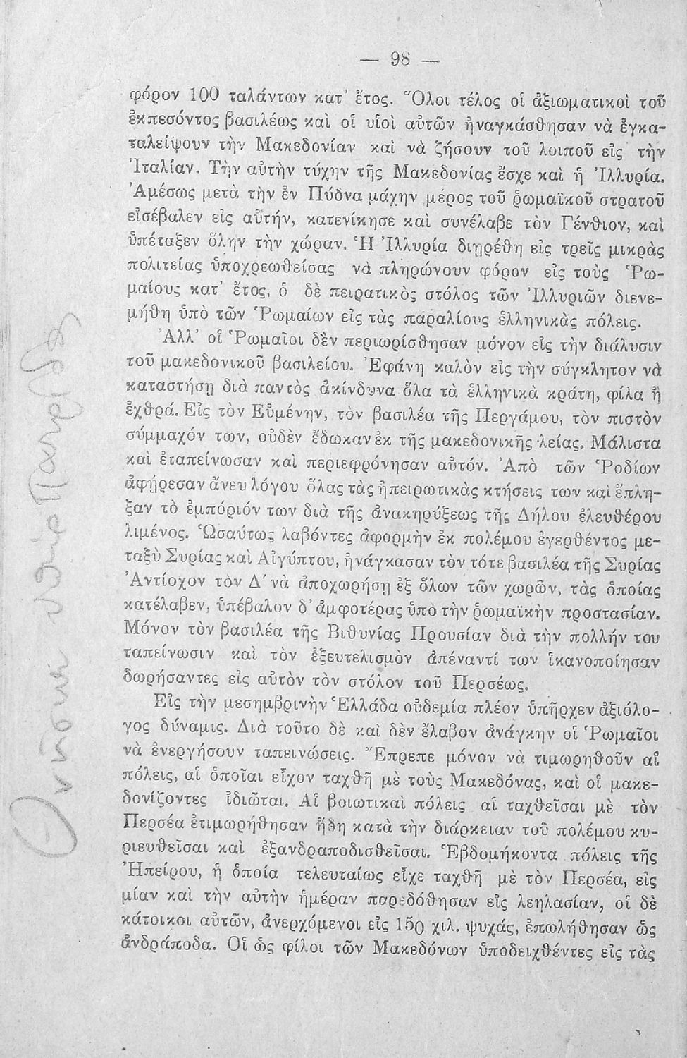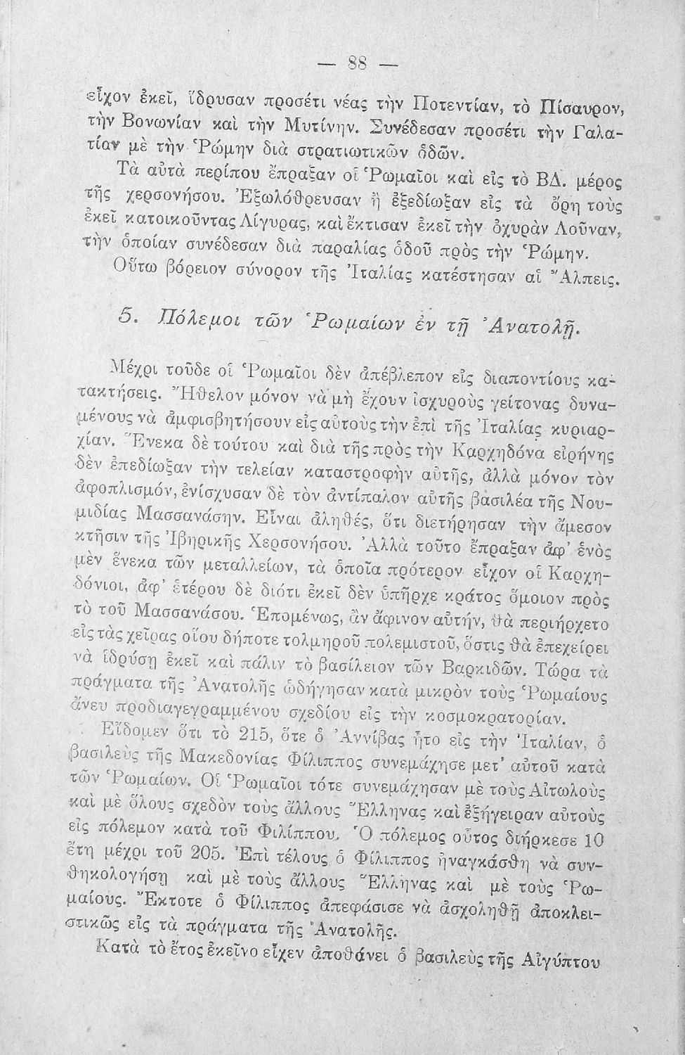 Βαθμίδα εκπαίδευσης: Δευτεροβάθμια Τάξη: Β' Γυμνασίου Μάθημα: Ιστορία Γλώσσα: Καθαρεύουσα Παρουσίαση περιεχομένου: Σχολικό εγχειρίδιο Ιστορίας Β΄ Γυμνασίου που καλύπτει την περίοδο από την κατάρρευση της Μακεδονικής Ηγεμονίας μέχρι τα χρόνια του Μ. Κωνσταντίνου και του Θεοδοσίου του Μεγάλου. Περιέχει χρονολογικό πίνακα των πιο σημαντικών γεγονότων. |