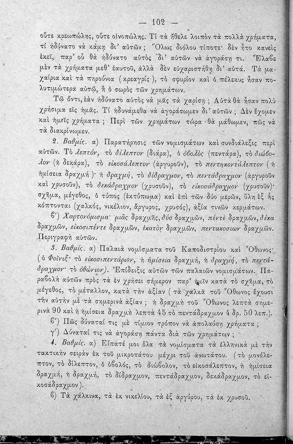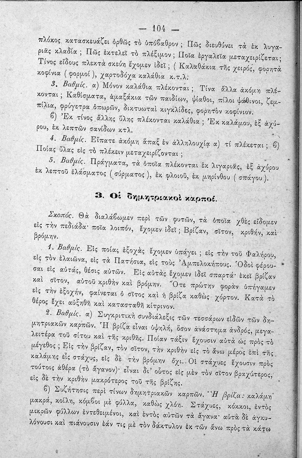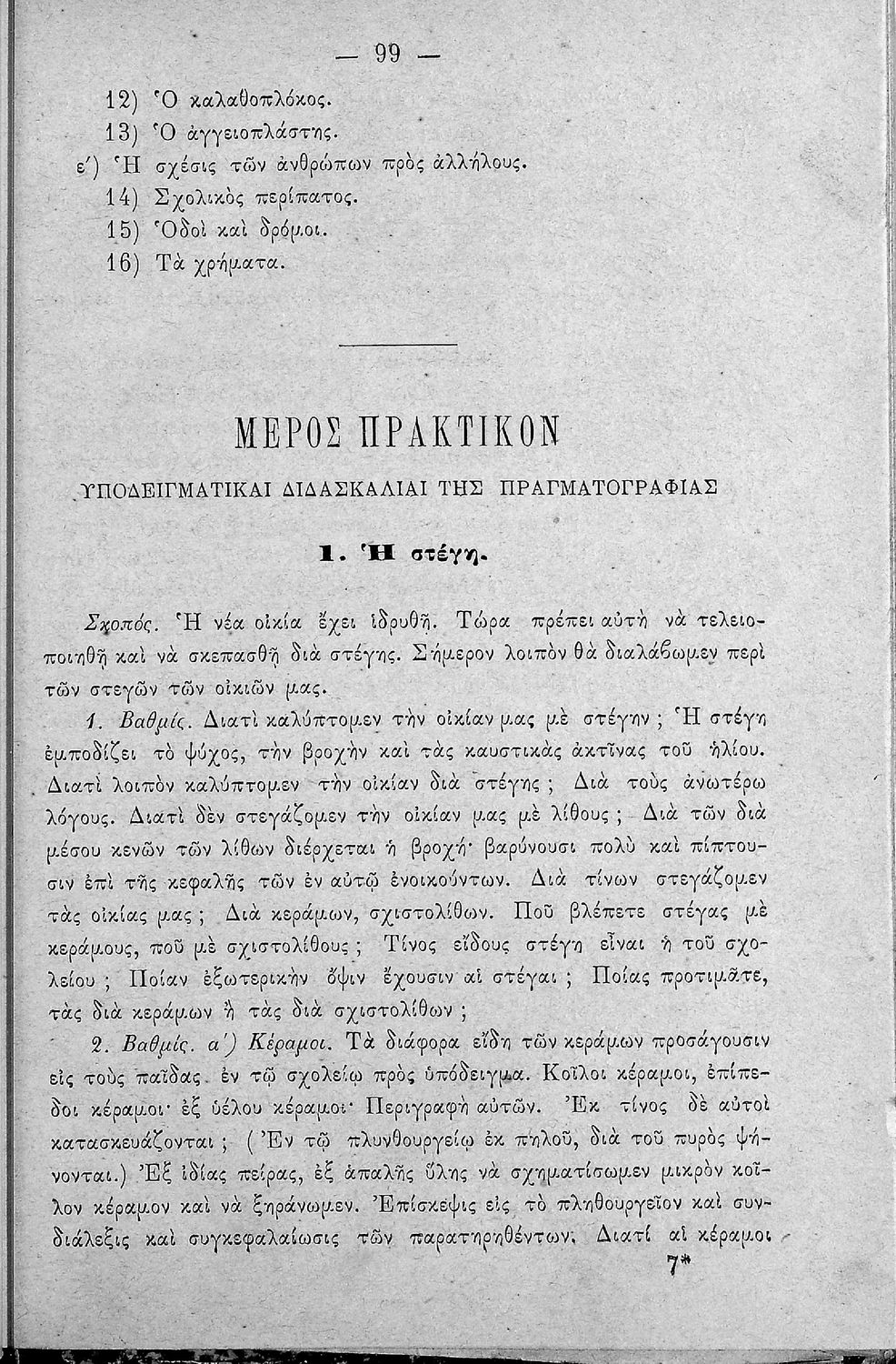 Τάξη:  Β' Ελληνικού Σχολείου / Γ'Ελληνικού Σχολείου / Αστικό Σχολείο / Παρθεναγωγείο