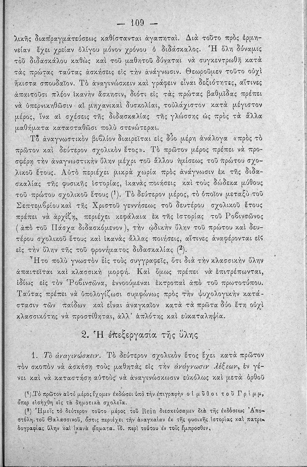 Παρουσίαση περιεχομένου: Παιδαγωγικό βοήθημα που υιοθετεί την ερβαρτιανή παιδαγωγική και εστιάζει στη διδασκαλία των μαθημάτων της Β΄ Δημοτικού. Ο συγγραφέας ήταν Δρ. Φιλοσοφίας και πρώην διευθυντής του Διδασκαλείου Αθηνών. Περιλαμβάνει και υποδειγματικές διδασκαλίες.