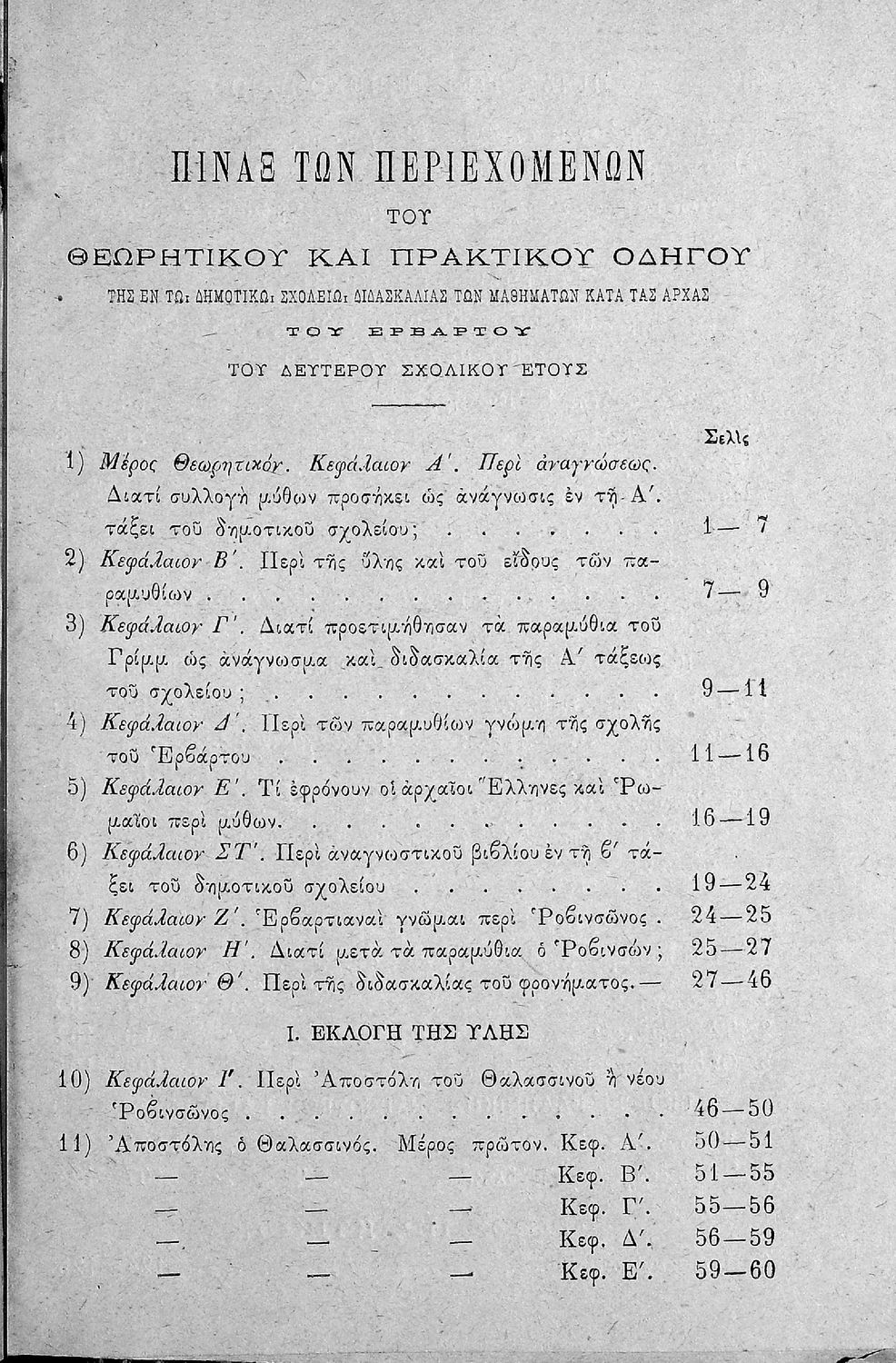 Παρουσίαση περιεχομένου: Παιδαγωγικό βοήθημα που υιοθετεί την ερβαρτιανή παιδαγωγική και εστιάζει στη διδασκαλία των μαθημάτων της Β΄ Δημοτικού. Ο συγγραφέας ήταν Δρ. Φιλοσοφίας και πρώην διευθυντής του Διδασκαλείου Αθηνών. Περιλαμβάνει και υποδειγματικές διδασκαλίες.