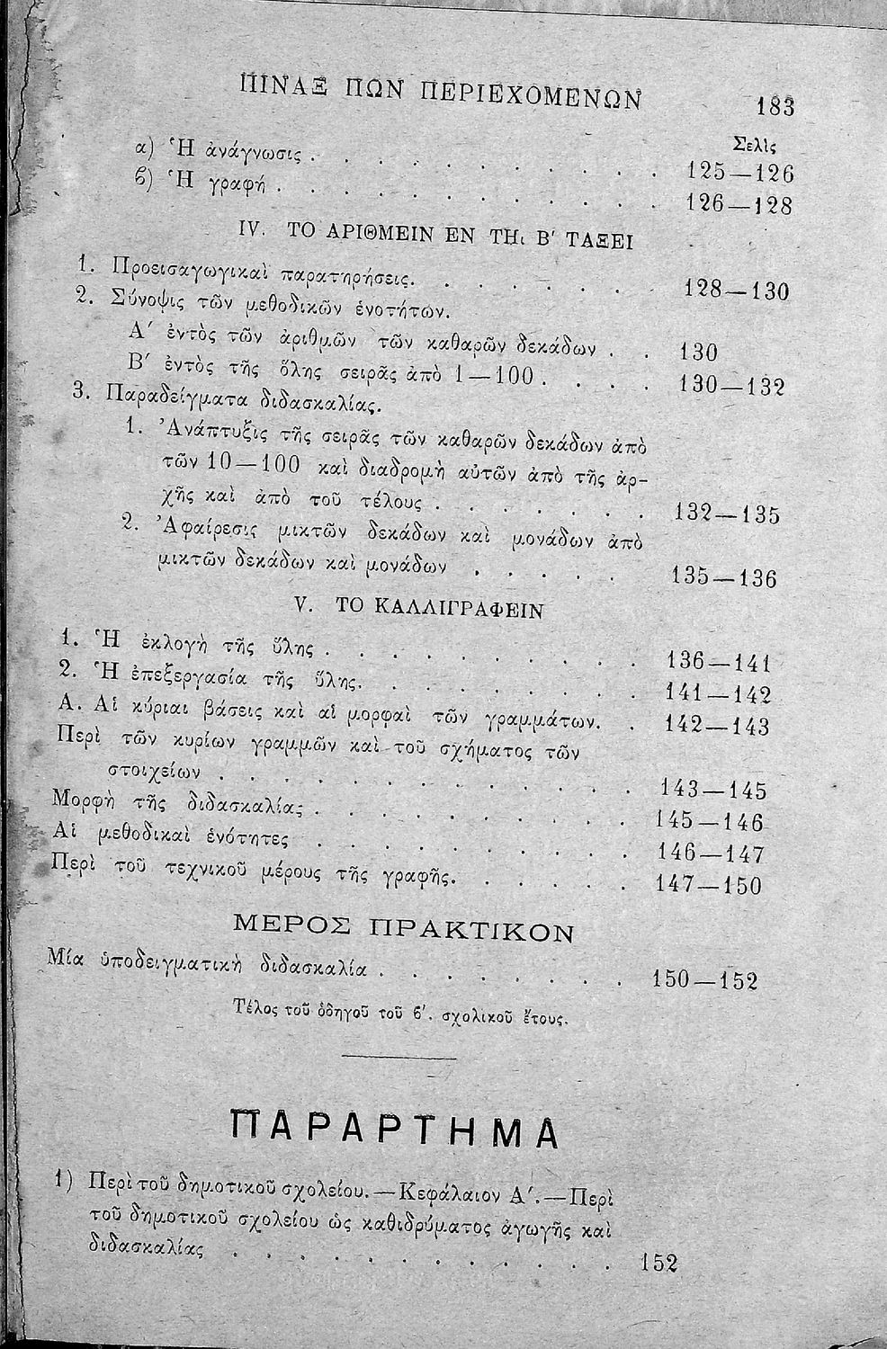 Τάξη:  Β' Ελληνικού Σχολείου / Γ'Ελληνικού Σχολείου / Αστικό Σχολείο / Παρθεναγωγείο