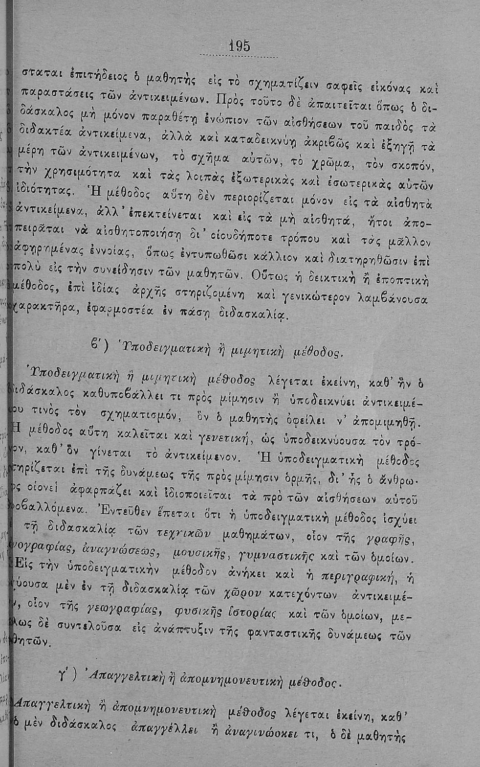 Παιδαγωγικό βοήθημα που περιλαμβάνει στοιχεία παιδαγωγικής, ψυχολογίας, λογικής και διδακτικής και εγκρίθηκε «δια τους διδασκάλους της Στοιχειώδους Εκπαιδεύσεως ως το μόνον διδακτικόν βιβλίον». Ο συγγραφέας ήταν Δρ. Φιλοσοφίας και καθηγητής στην Ριζάρειο Σχολή και το Αρσάκειο Παρθεναγωγείο.