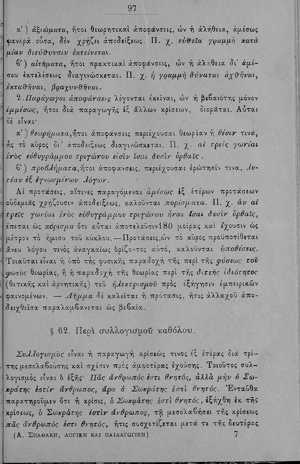 Παιδαγωγική περιλαμβάνουσα συνοπτικώς ιστορίαν της παιδαγωγικής, ψυχολογίαν, λογικήν, γενικήν παιδαγωγικήν και διδακτικήν προς χρήσιν των διδασκαλείων αμφοτέρων των φύλων